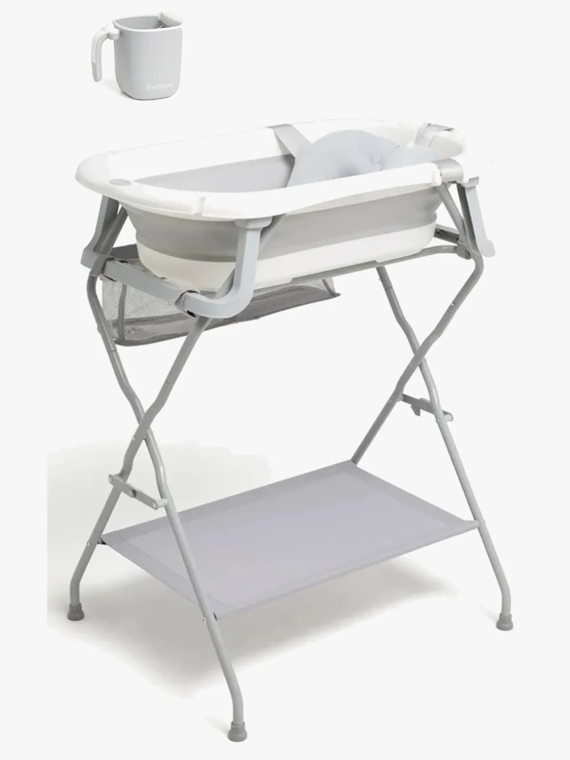 – OBS: Brug ikke stativet, når dit barn kan stå selv, og husk aldrig at efterlade dit barn uden opsyn i badet.