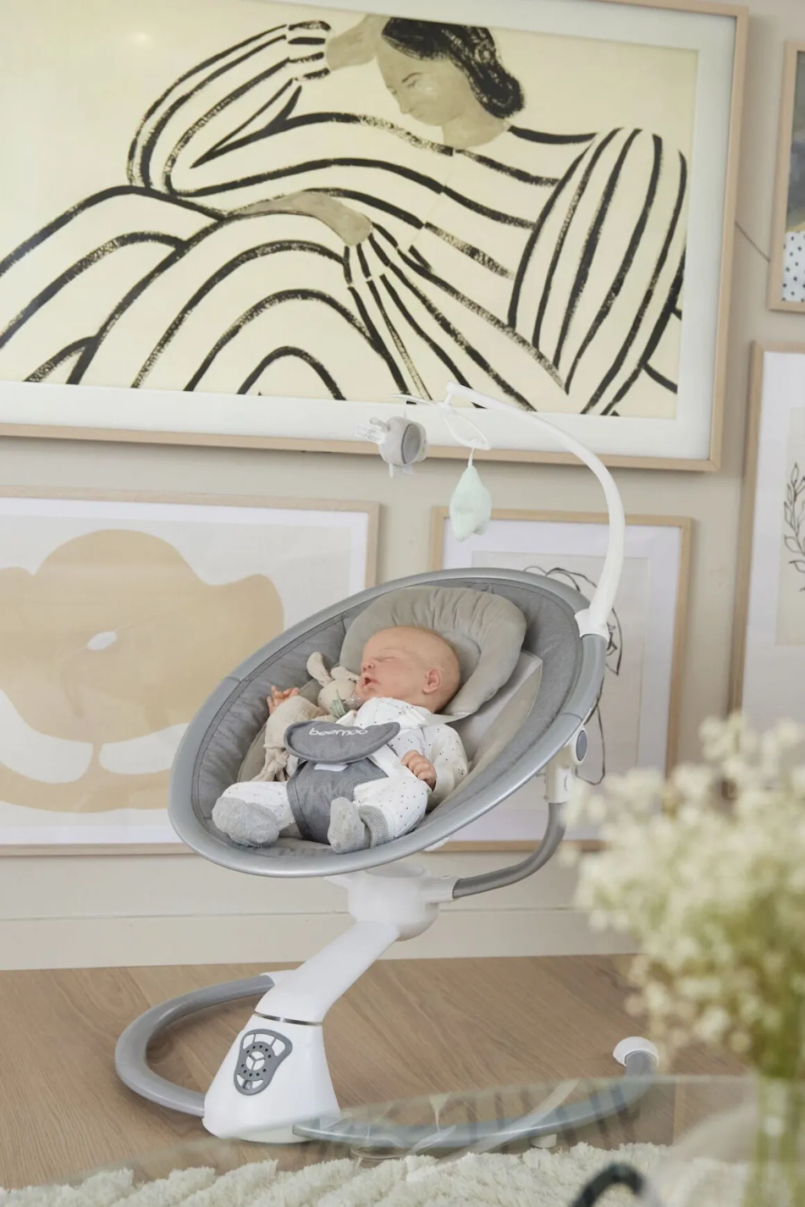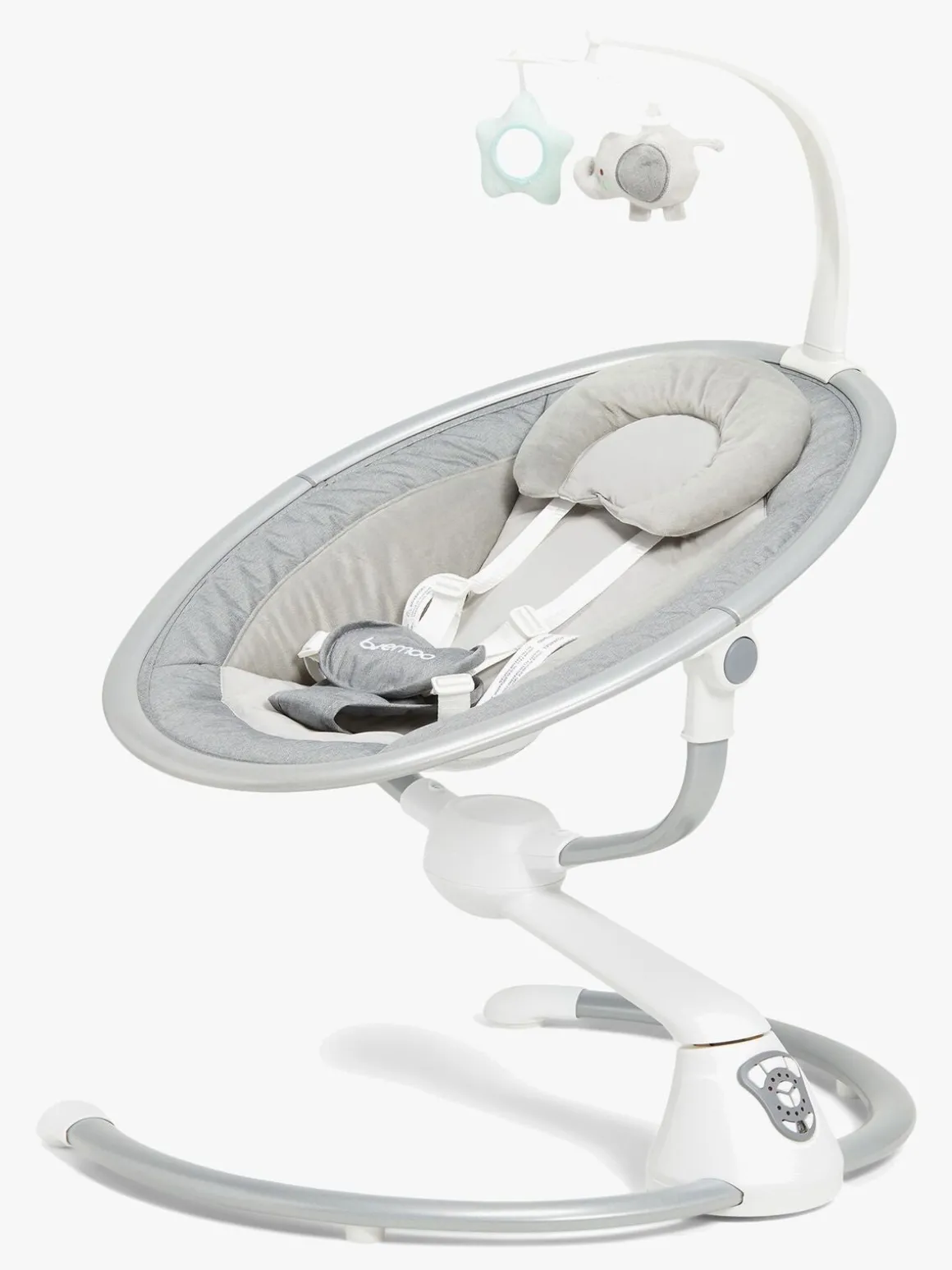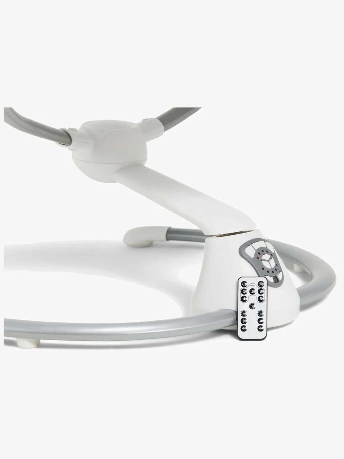 – Fjernkontrol medfølger til justering af gynge- og musikfunktion.