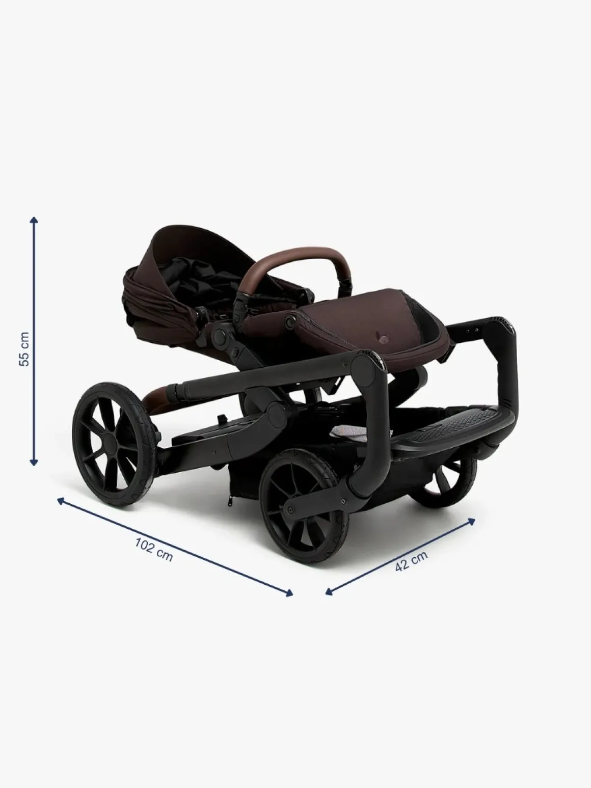 – Køb en liggede, et babysæde eller et ekstra sæde, og lav vognen om til en duovogn eller søskendevogn. Denne vogn vokser med familien!