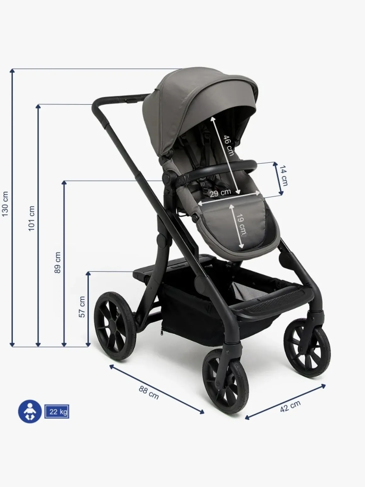 – Køb en liggede, et babysæde eller et ekstra sæde, og lav vognen om til en duovogn eller søskendevogn. Denne vogn vokser med familien!