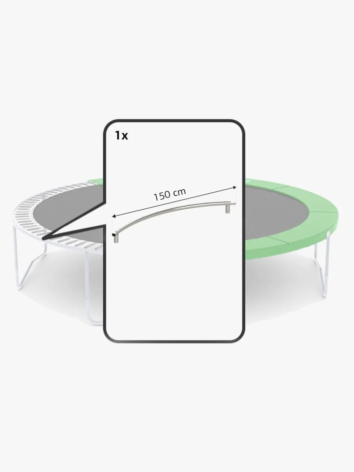 En reservedel til din trampolin fra BERG. Den svejsede topskinne er 150 cm og en reservedel til BERG Favorit 380.