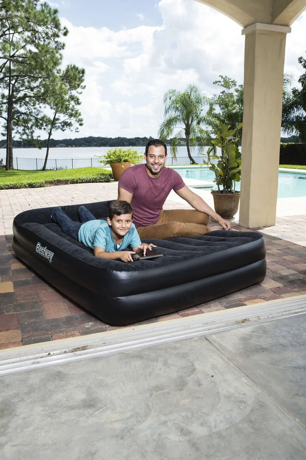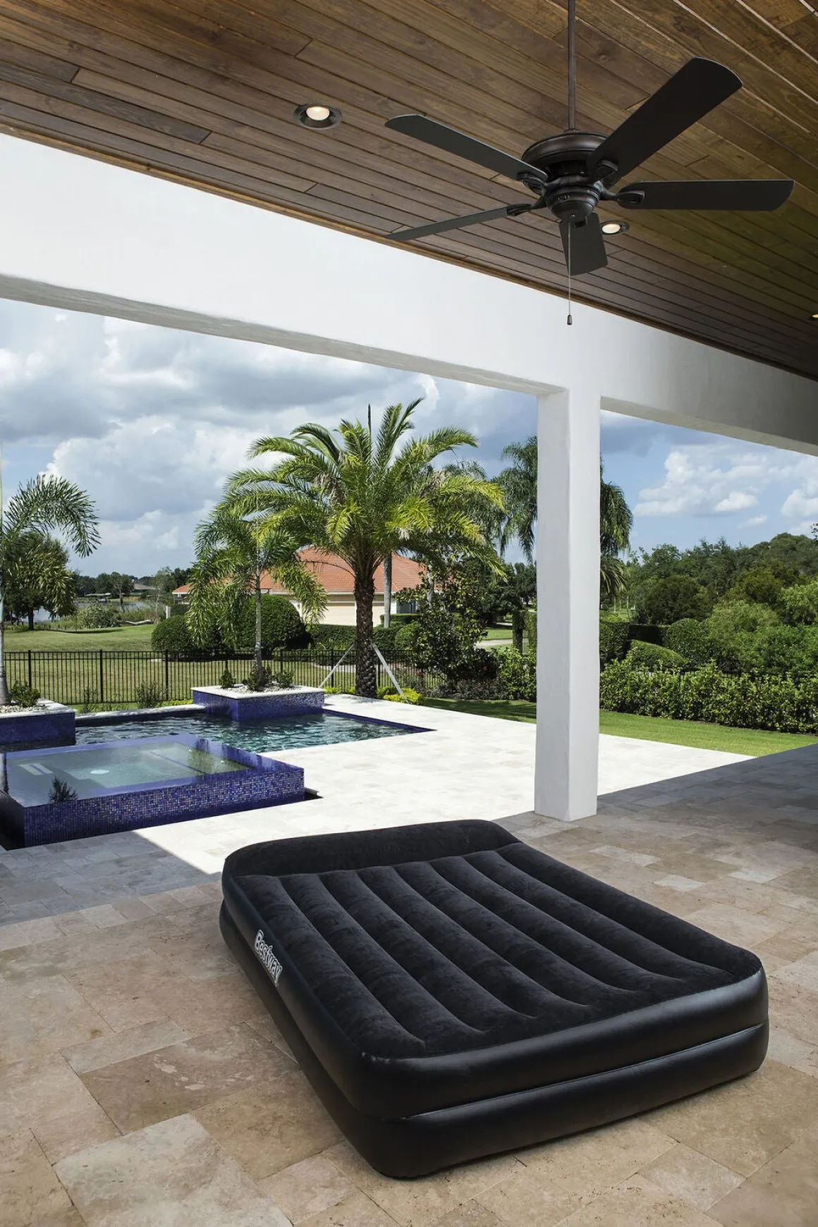 Madrassen blæses op på 4 minutter med den elektroniske pumpe og fungerer perfekt til indendørs brug. En praktisk transport- og opbevaringstaske medfølger.