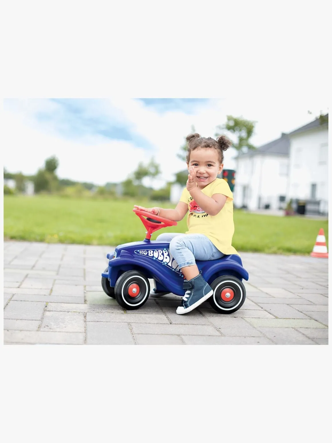 Gåbilen er fremstillet af robust plastik, så den er både sikker og kan holde til en masse sjov og leg. brug fødderne til at få bilen til at bevæge sig og sæt dem på fodstøtten, når der er kommet fart nok på. Styr med det fine rat og brug hornet, for at hilse på alle dem du kører forbi.