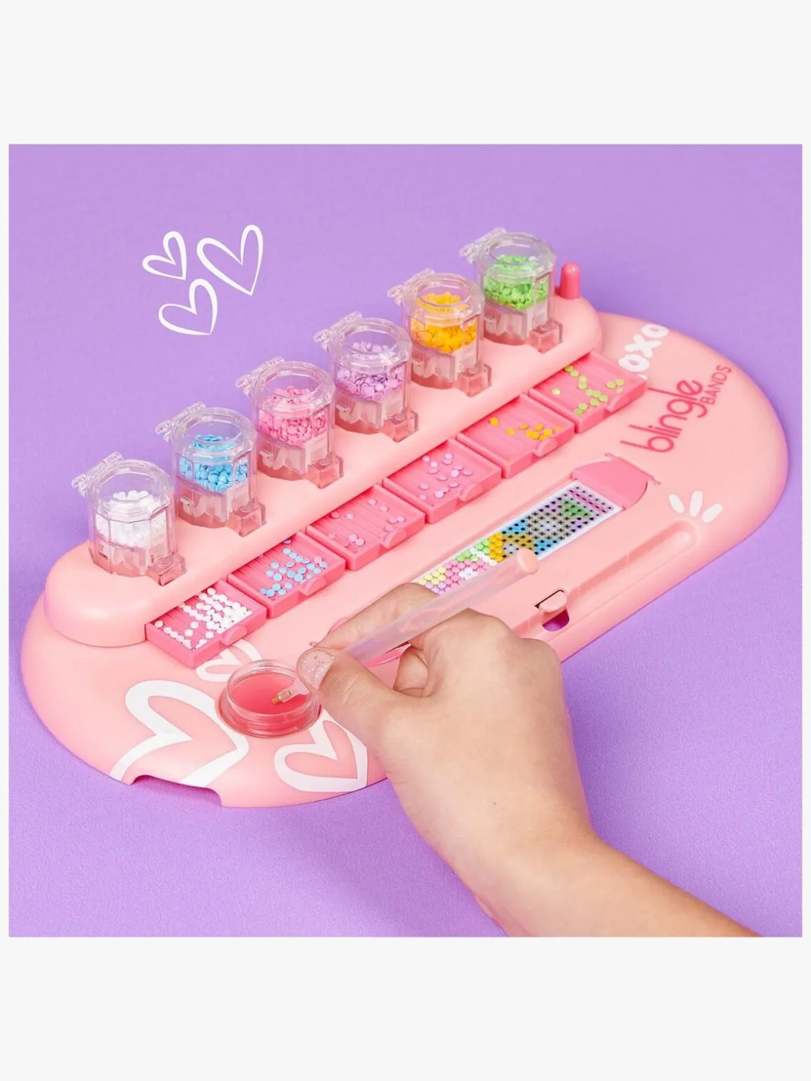 – Indeholder 8 armbånd med bånd og perler i 8 farver, en Blingle-pen og voks m.m.