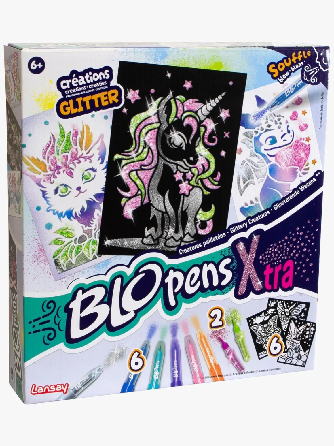 – Indeholder: 6 blæsepenne, 2 glittertuber, 6 stenciler.