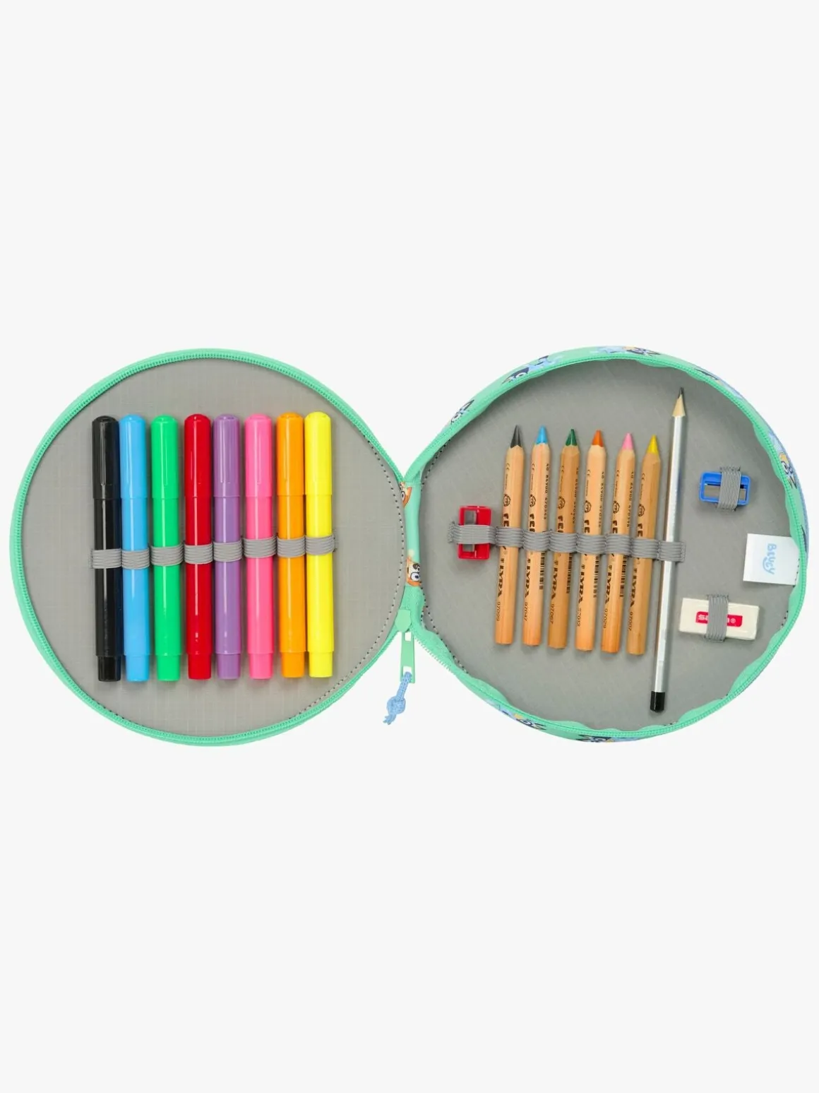 – Indeholder: 6 farveblyanter, 8 tusser, 2 blyantspidsere, 1 viskelæder, 1 blyant, 1 penalhus.