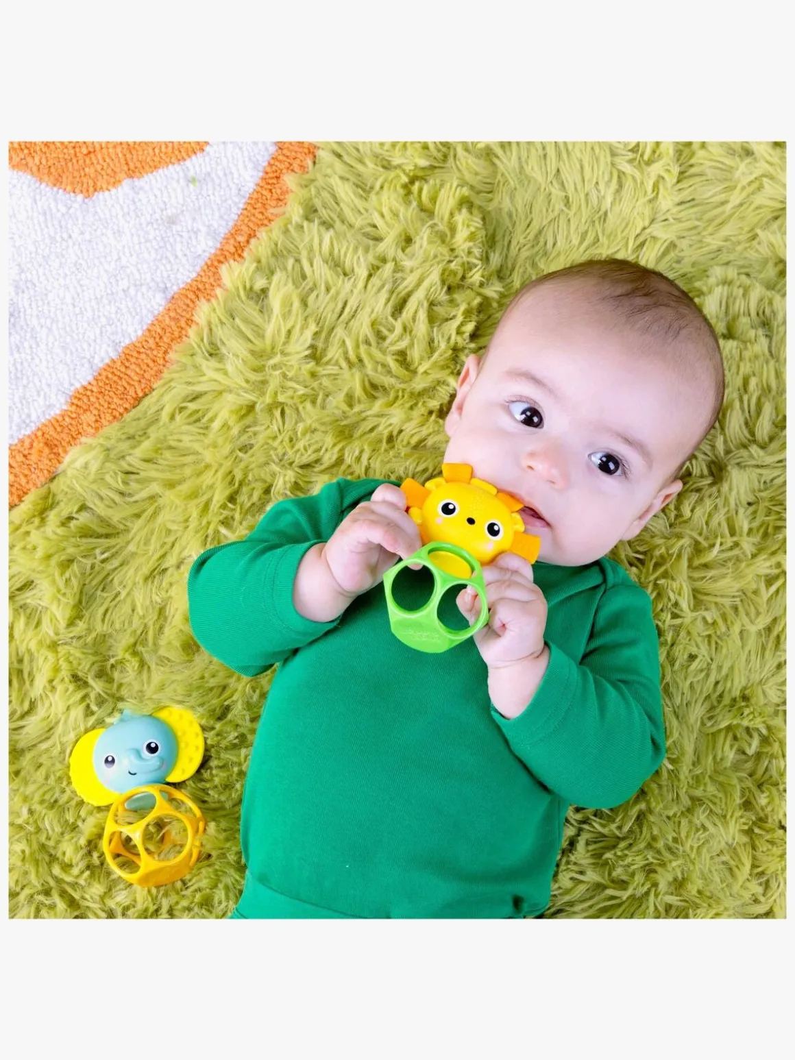 – Ranglen er nem at holde fast i med små hænder og laver bløde raslelyde, når dit barn ryster den.
