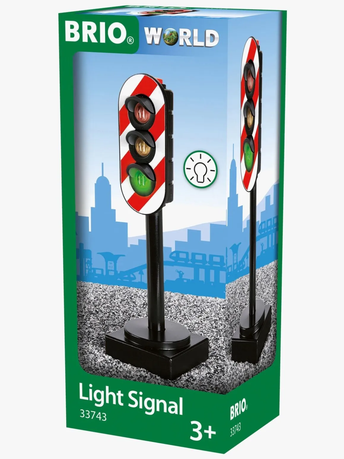 Et smart lyssignal fra BRIO, der hjælper dig med at holde styr på sikkerheden på togbanen. Lyssignalet giver dig mulighed for at kontrollere at alle tog ved hvornår de skal stoppe for anden trafik. Tryk på knappen for at aktivere lyssignalet – rødt betyder stop, gult betyder vent, og grønt betyder at det er tid at tøffe afsted på nye eventyr!