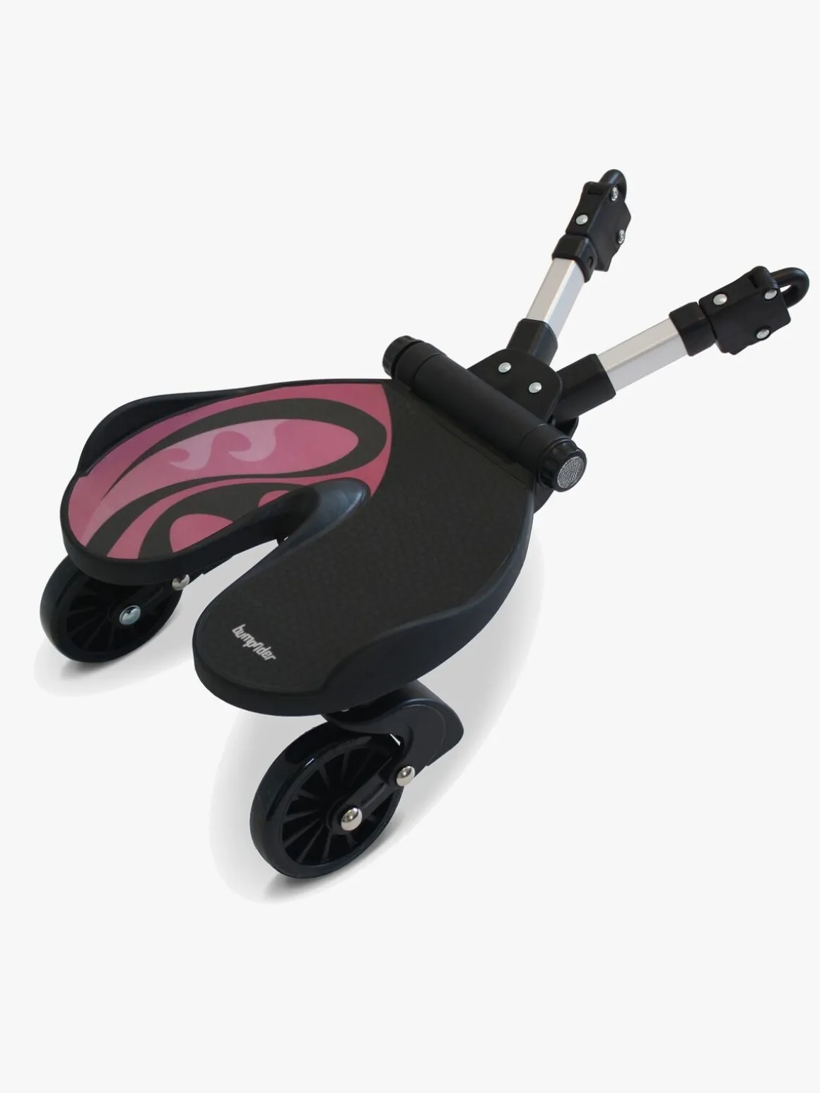 En afbalanceret affjedringsteknik giver barnet en jævn og behagelig ståplads, selv på ujævnt underlag, og det sættes fast på barnevognen med et snuptag. Lettere bliver det ikke!
