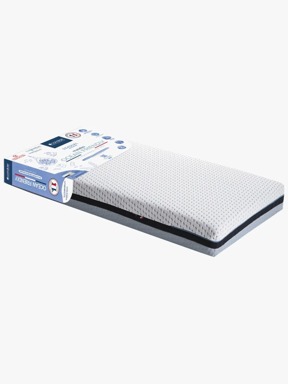 Madrassen giver en god støtte til dit barns hoved og ryg, og passer perfekt i tremmesengen. Betrækket lukkes med en lynlås, så det er let at tage af og vaske i vaskemaskinen. Madrassen er fremstillet i Frankrig og har 5 års garanti.