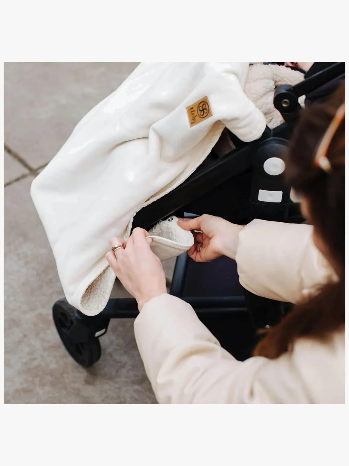 | Materiale | Glat side: 100 % økologisk bomuld. Bamseside: 100 % genanvendt polyester. |