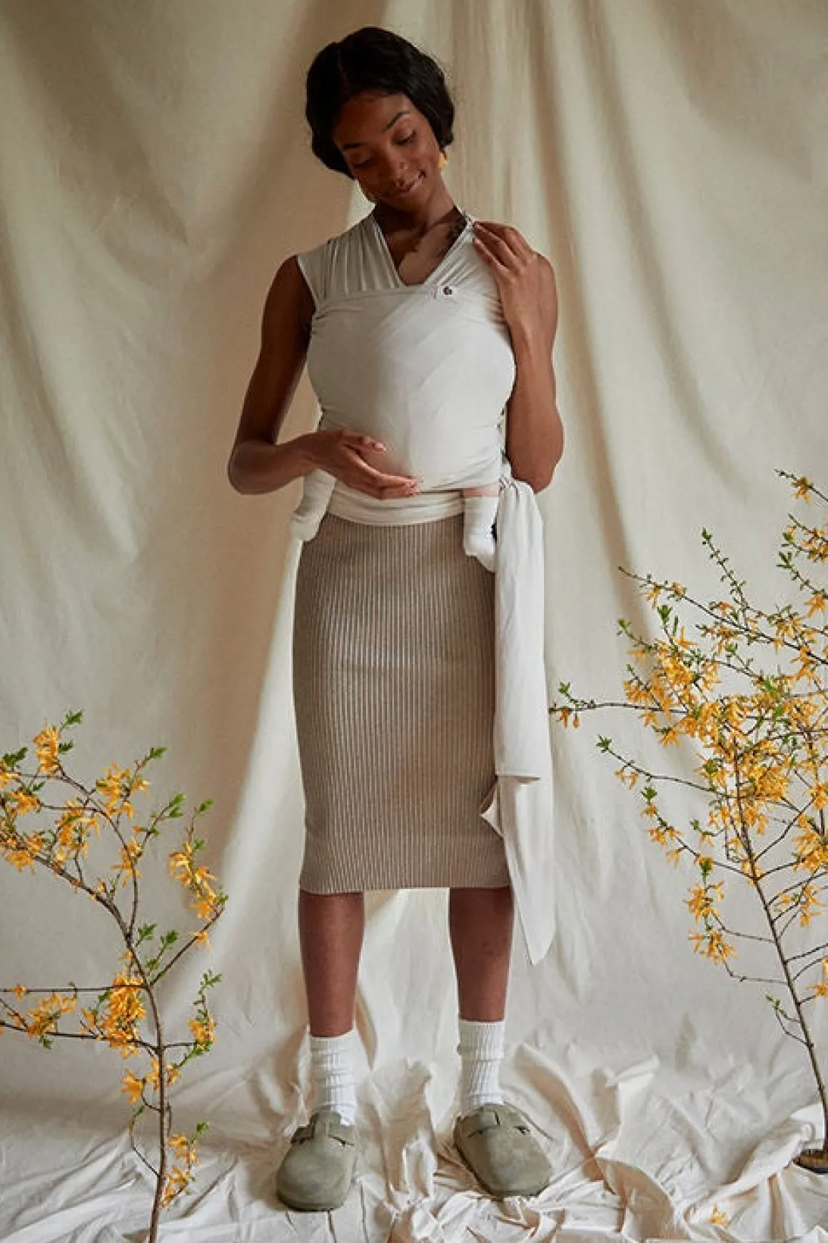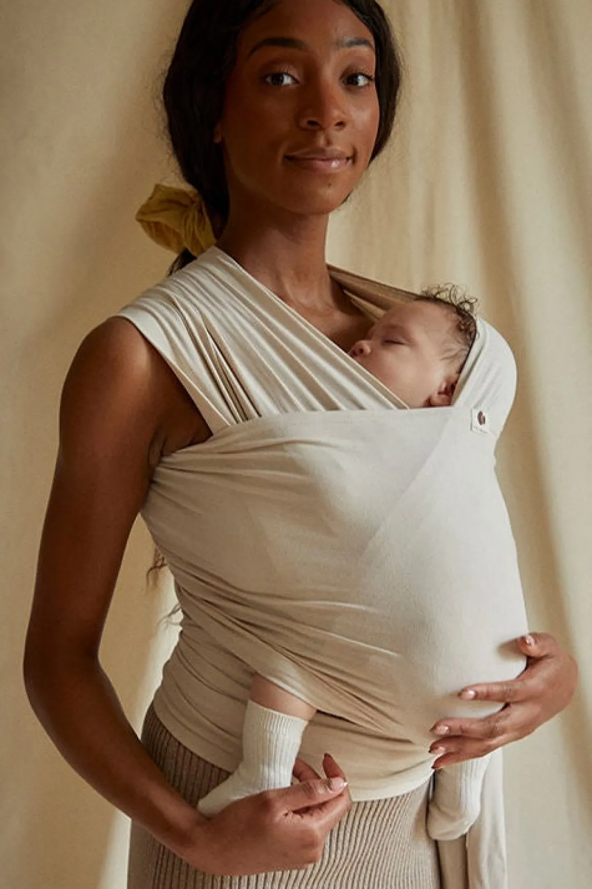 Coracors strækvikler har tovejsstretch, der gør den føjelig og aflastende. Viklen er fremstillet af blødt, økologisk GOTS-certificeret bomuld, men en smule elastan, for at gøre den mere føjelig. Dette materiale er åndbart og holder både dig og dit barn tilpas varm.
