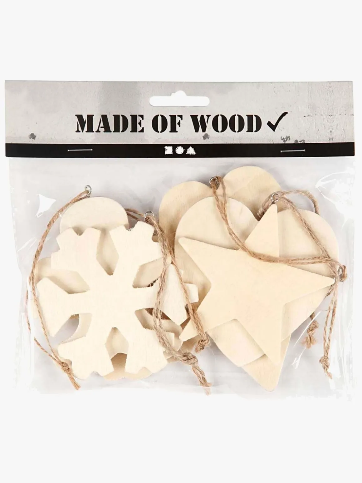 Lav din egen julepynt med dette kreasæt fra Creativ Company. Du får 6 forskellige motiver i lyst træ, som du kan dekorere med farve, glitter, filt eller andet I har derhjemme. Pynt op med dem på juletræet eller i vinduet. Perfekt juleaktivitet for hele familien.