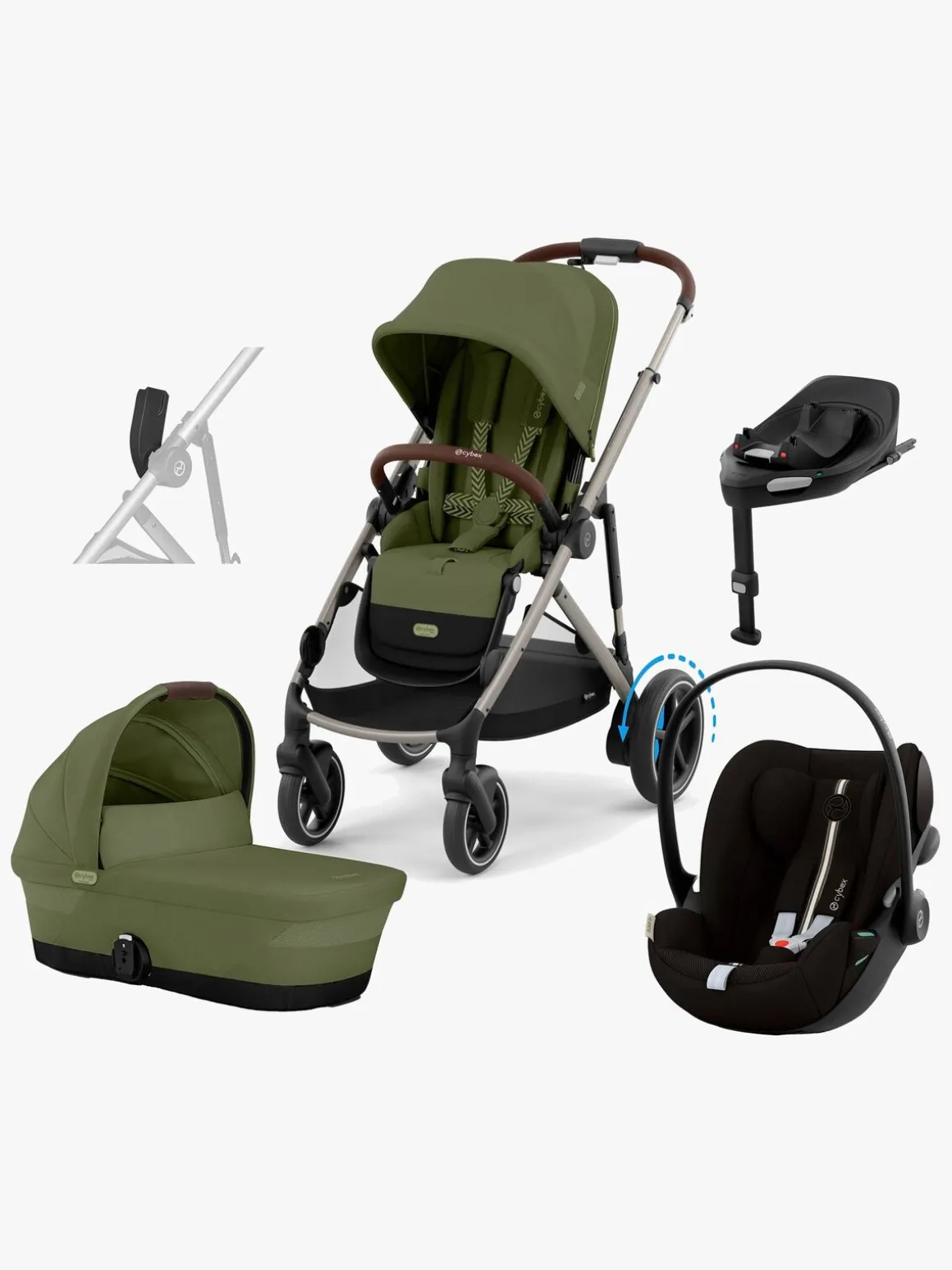 – Babyautostol og base medfølger.