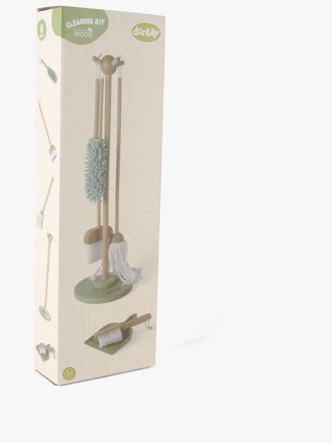 – Indeholder: 1 børste, 1 fejekost, 1 støvekost, 1 fejebakke, 1 moppe, 1 stander.