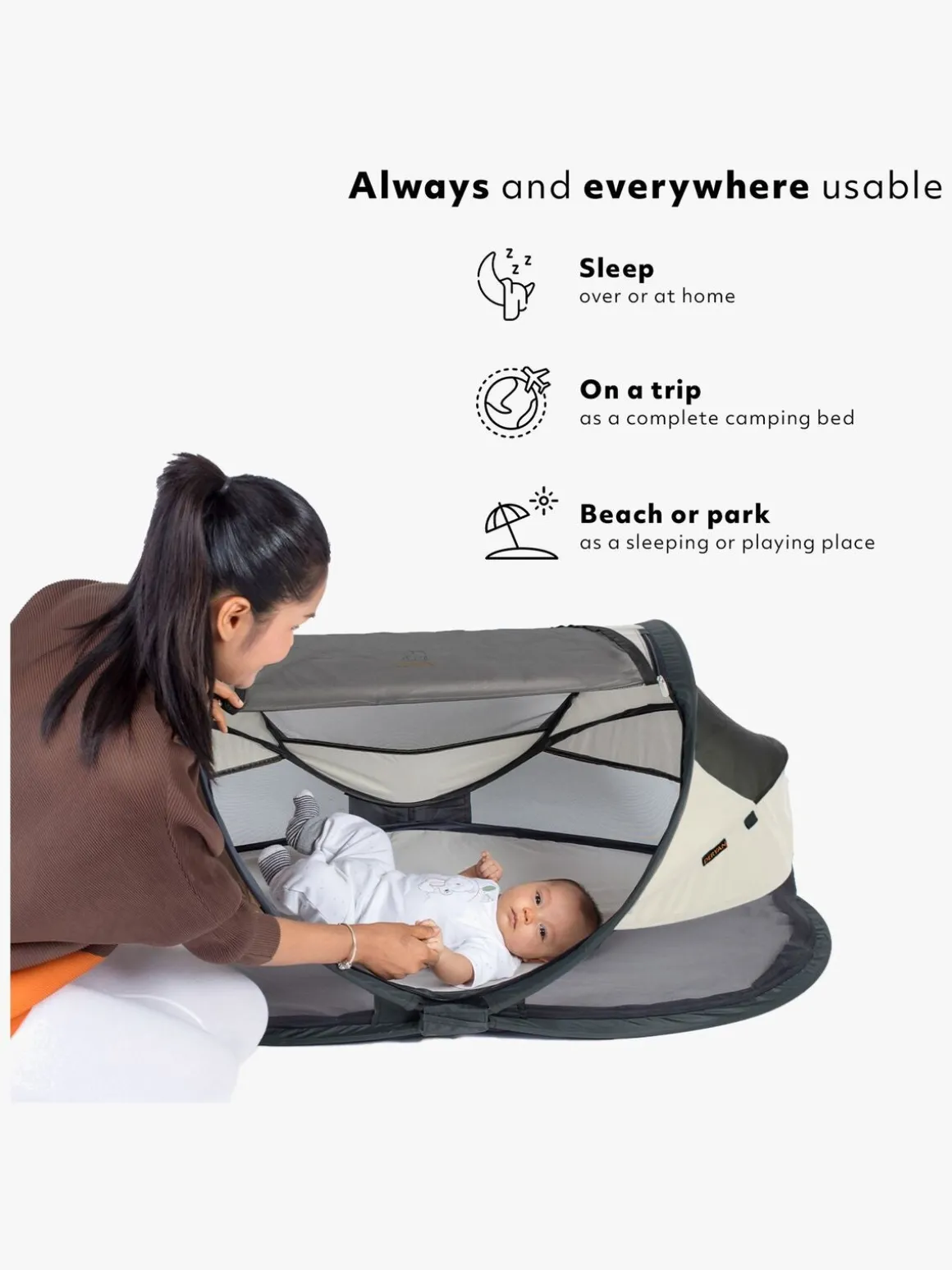 – Beskytter mod sol, sand og vind!