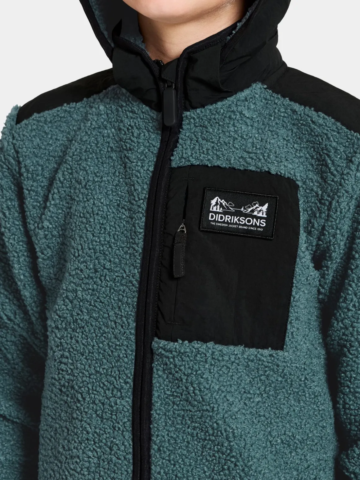 – Hætte og detaljer: 100 % polyamid.