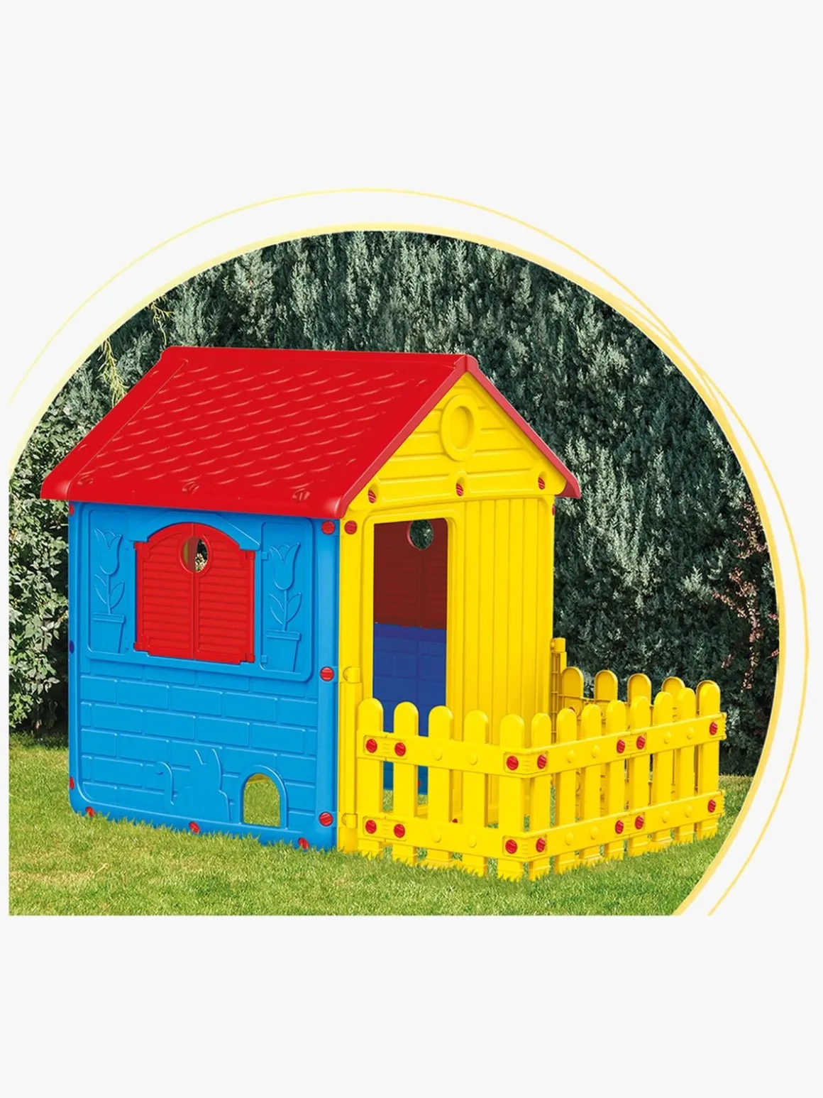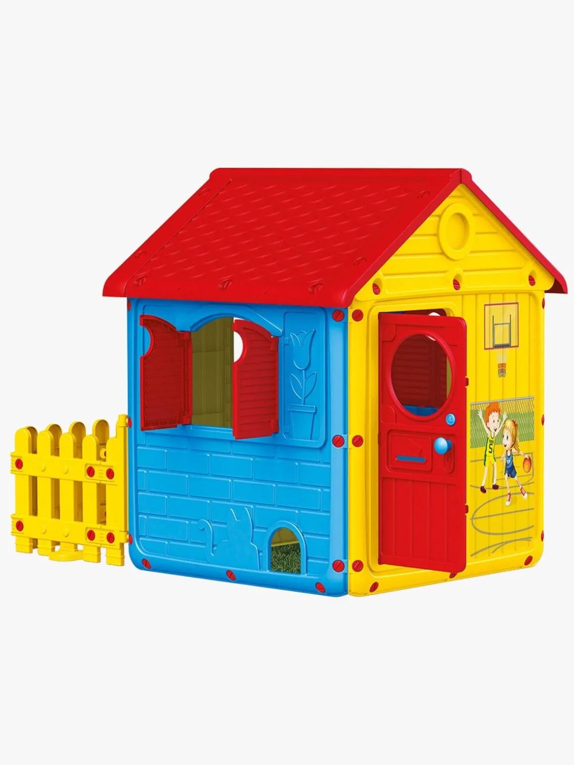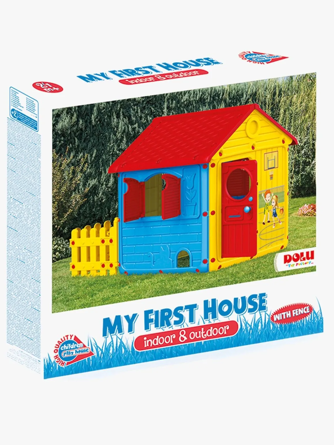 DOLU Legehus m. Stakit, Rød/Blå/Gul