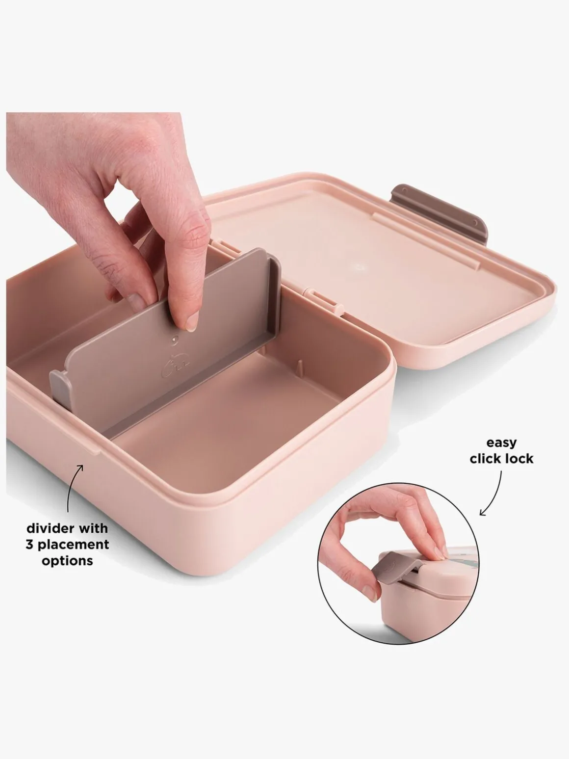 – Madkassen har et klik-og-luk-låg.