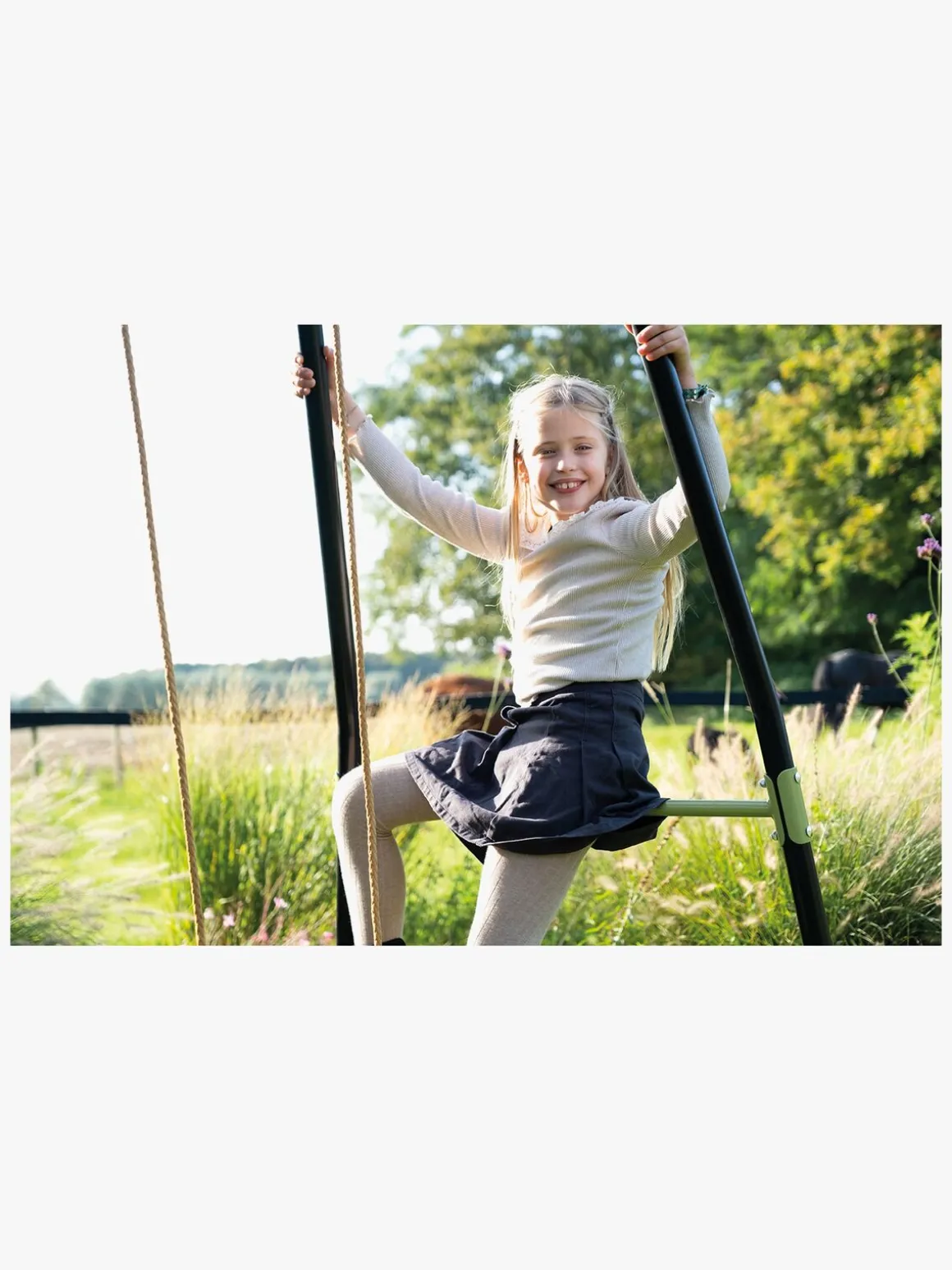 – Højdejusterbare gynger (maksimal højde: 55 cm).