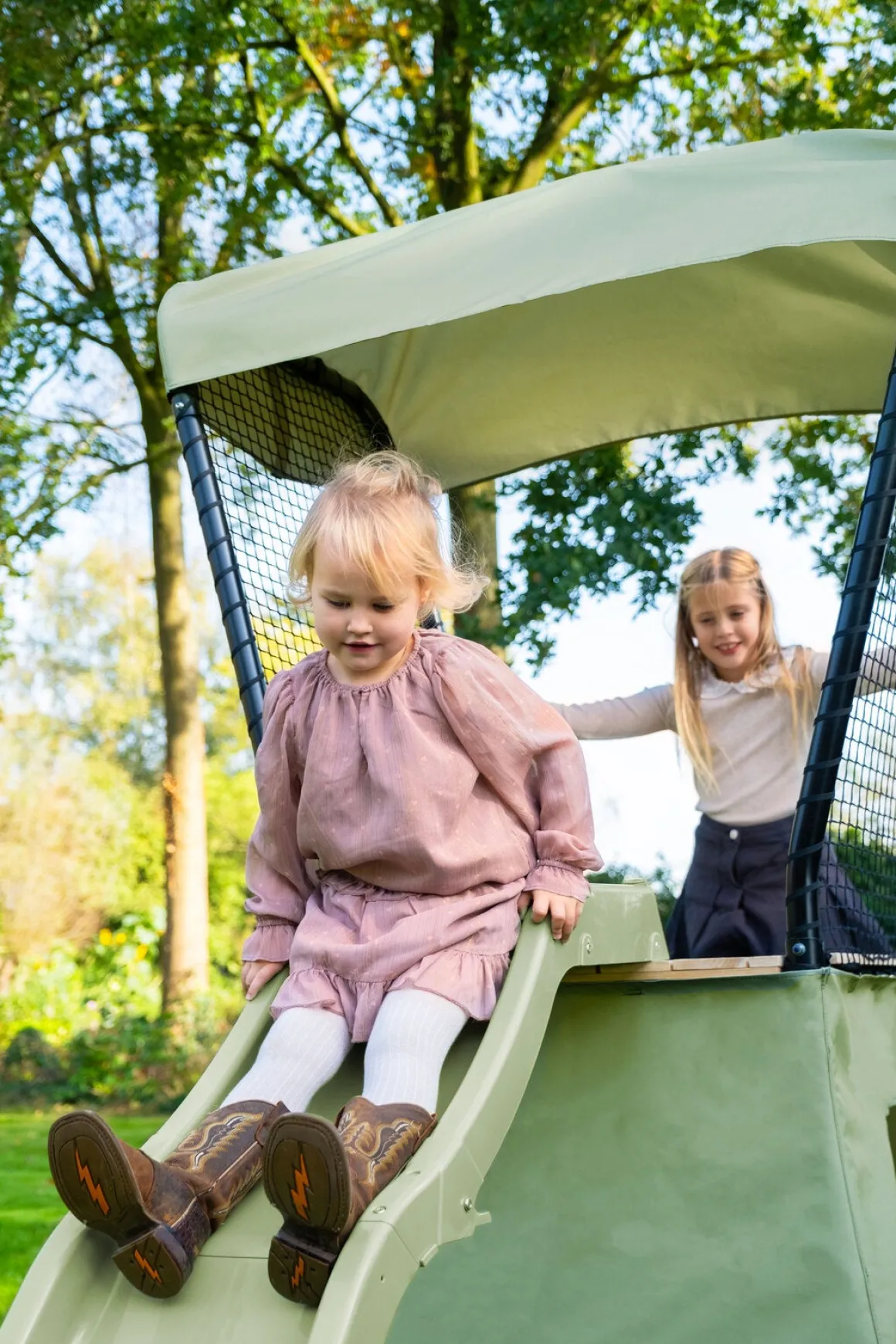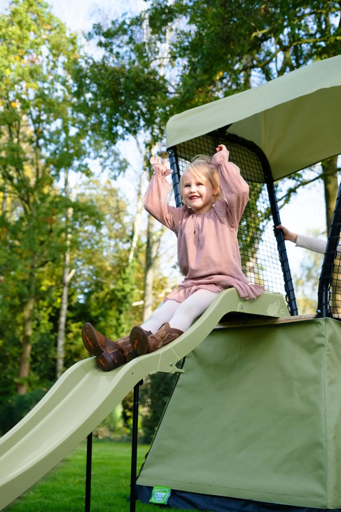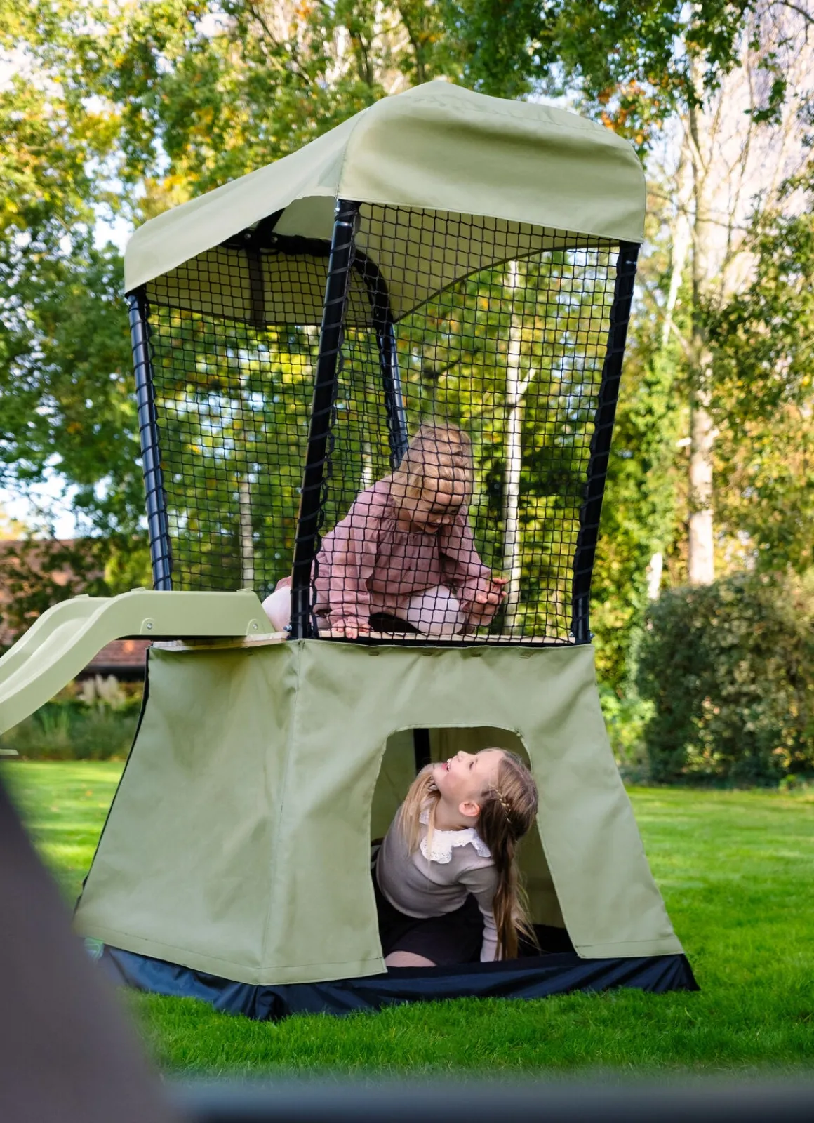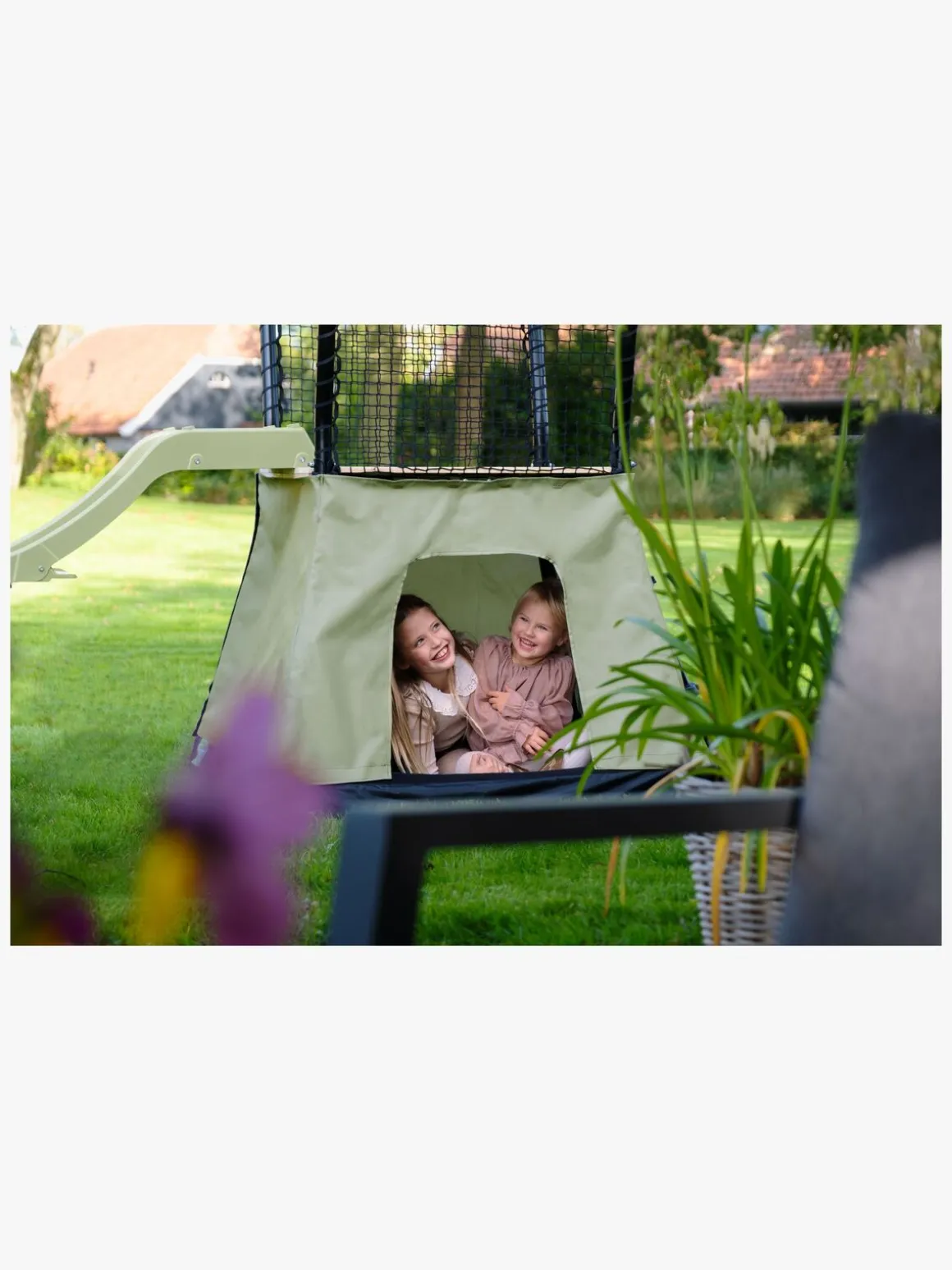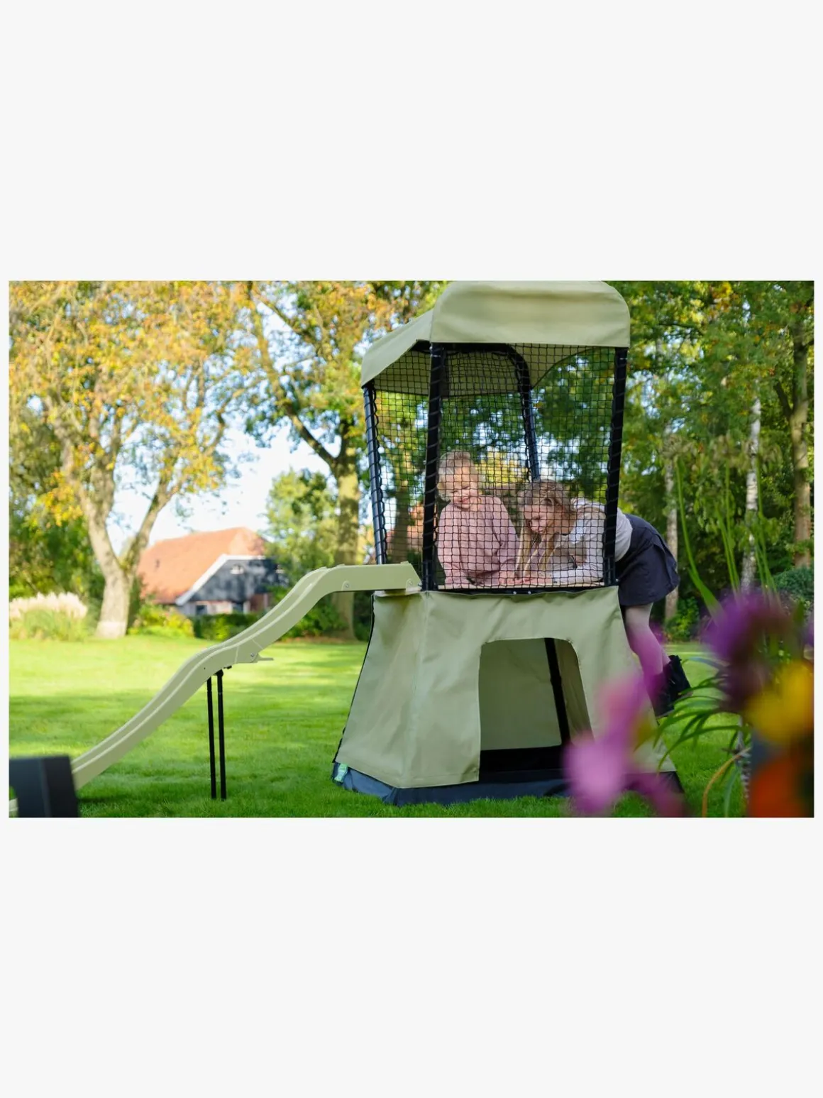 – Plads under legetårnet, der kan bruges som sandkasse.