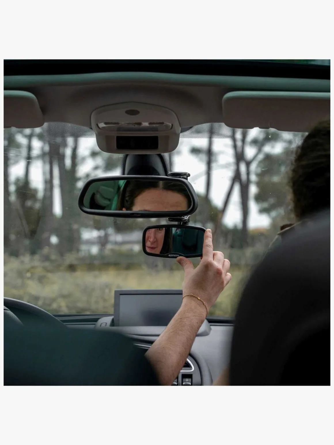 – Fastgøres under dit almindelige bakspejl.