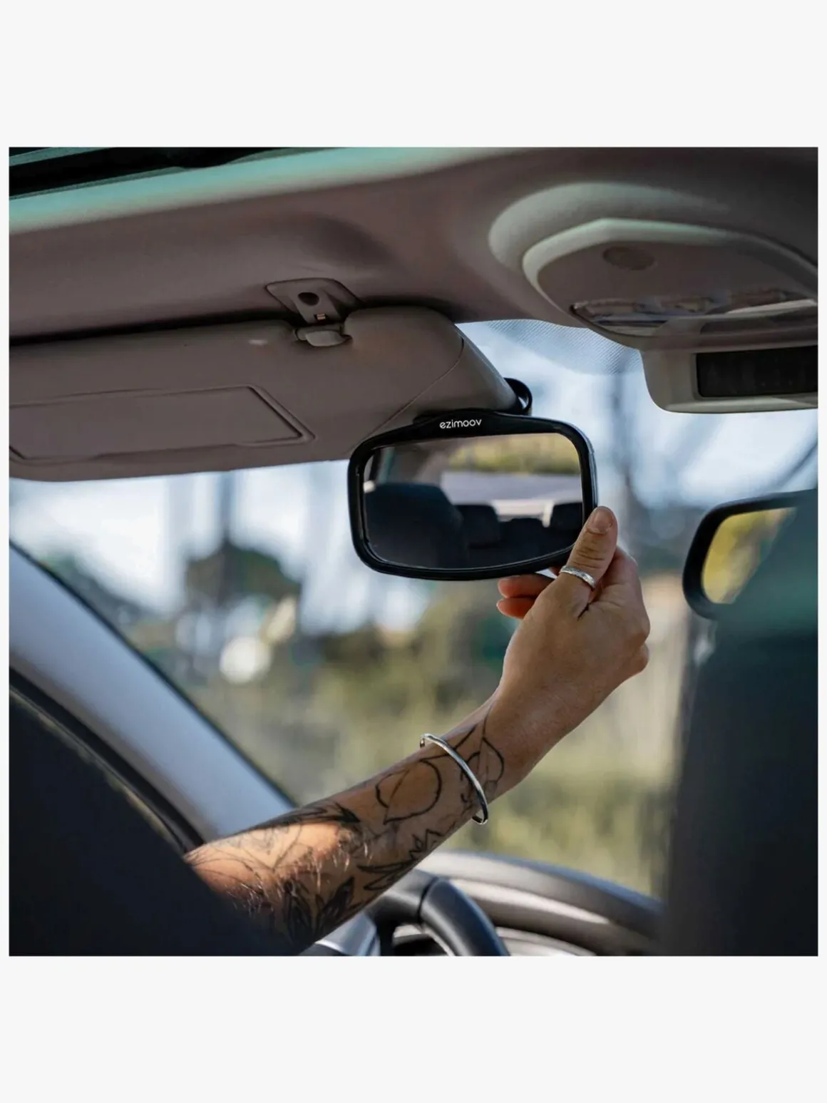 – Fastgøres under dit almindelige bakspejl.