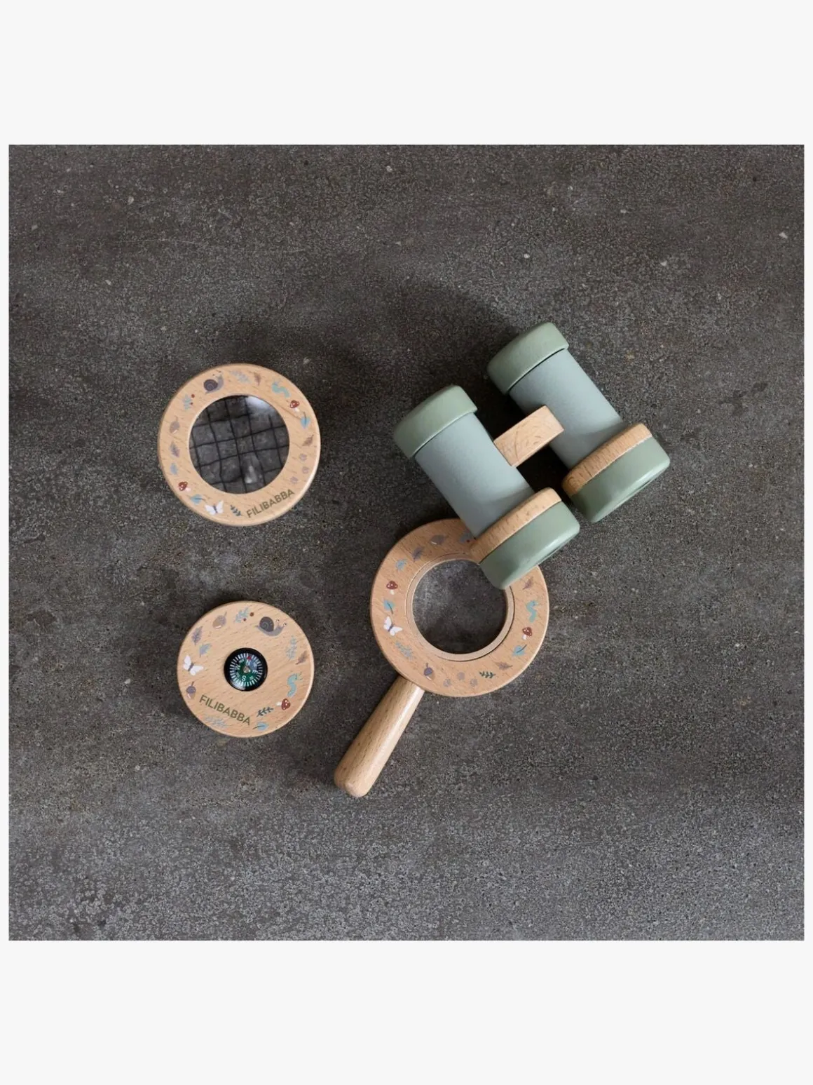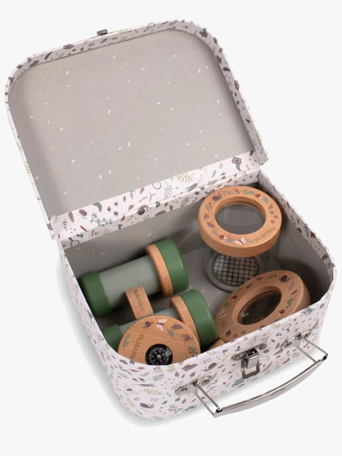 – Indeholder: 1 kuffert, 1 kikkert, 1 insektglas, 1 kompas, 1 forstørrelsesglas.