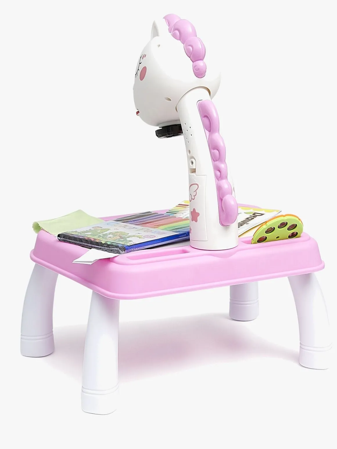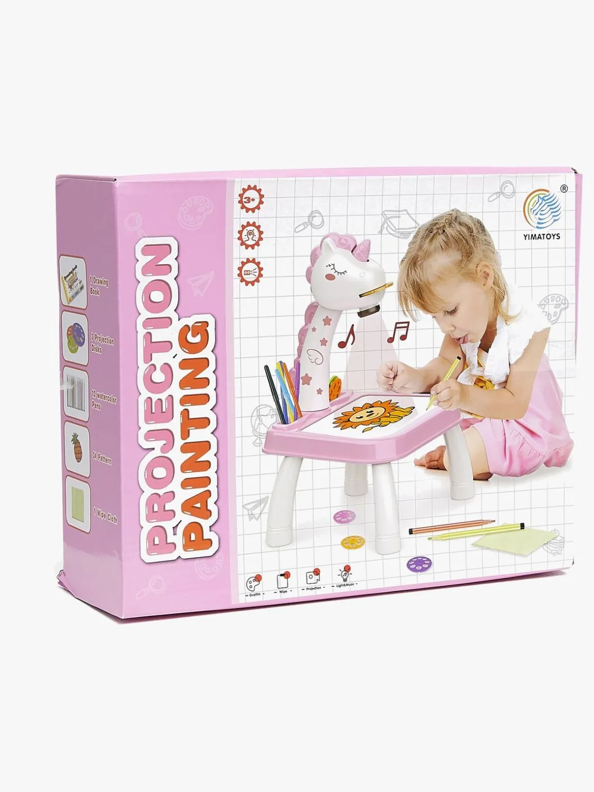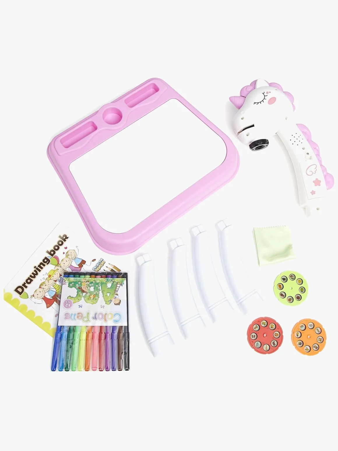 – Indeholder: 1 tegneblok, 3 projektionsskiver, 12 vandbaserede tusser, 24 mønstre, 1 aftørringsklud.
