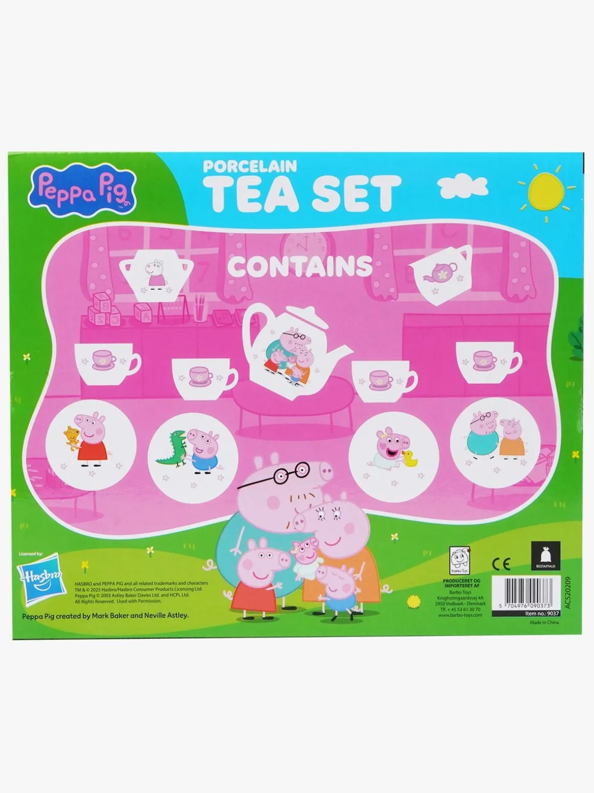 – Indeholder: 1 tepotte med låg, 4 rum, 4 underkopper, 1 sukkerskål med låg, 1 mælkekande.