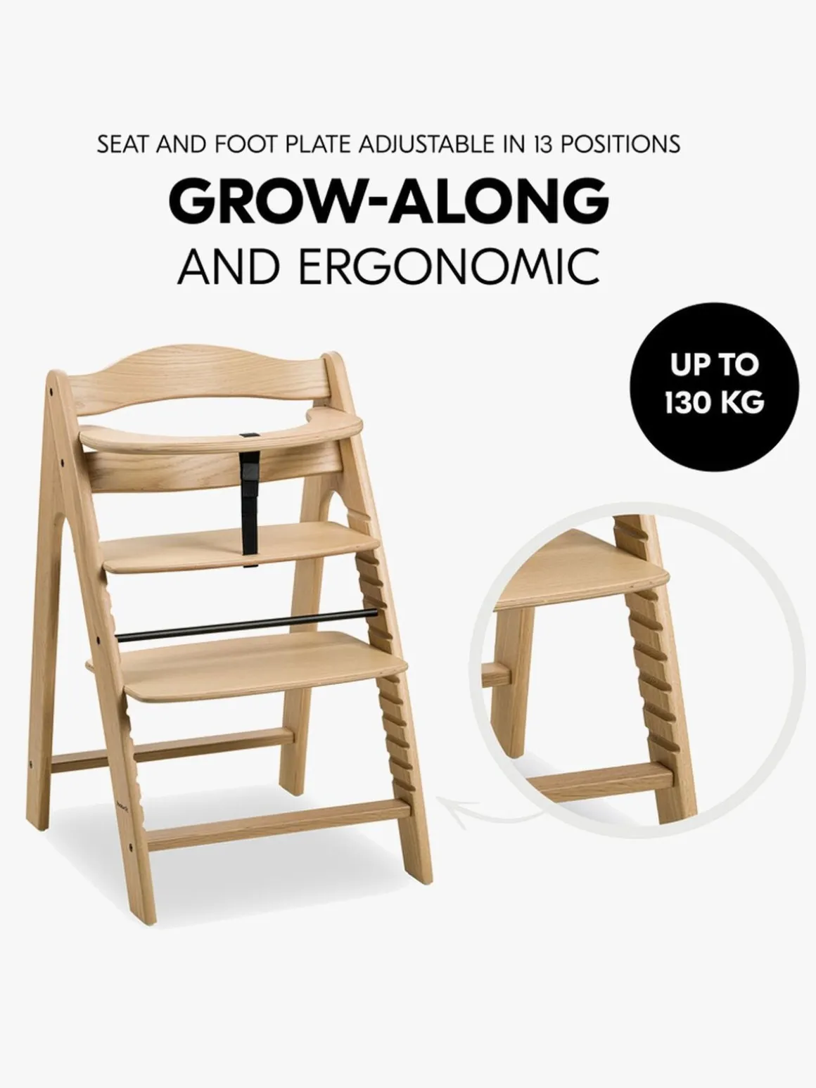 – Kan kompletteres med 3-i-1-skråstolen og adaptere til brug fra nyfødt, hynde, babysæt, legebakke, højstolsbakke og opbevaring.