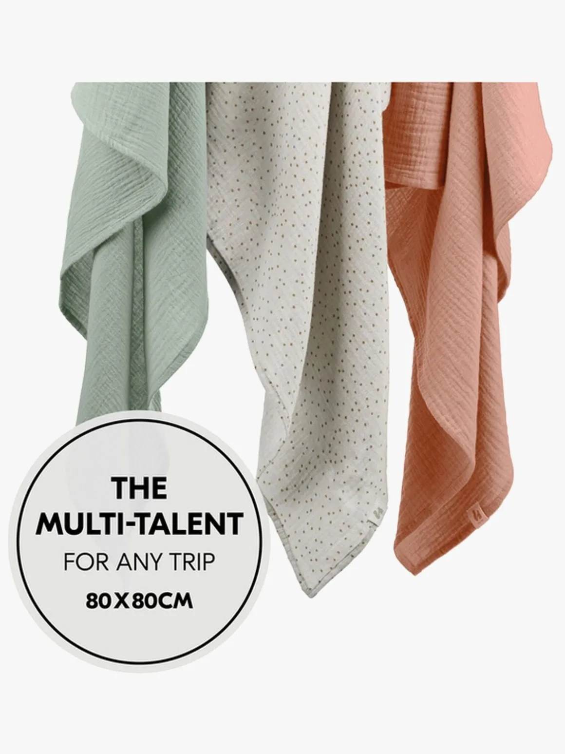 – Brug stofbleerne, når du ammer, giver barnet flaske og som gylpeklud eller pusleunderlag, når du er på farten. De kan også bruges som afskærmning, hagesmæk eller nusseklud.