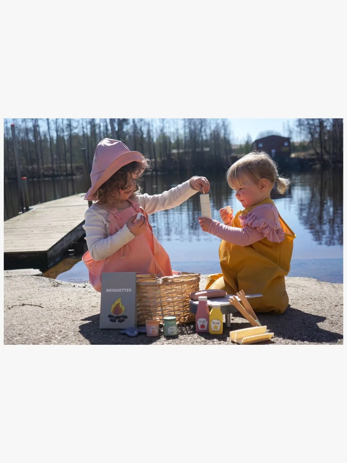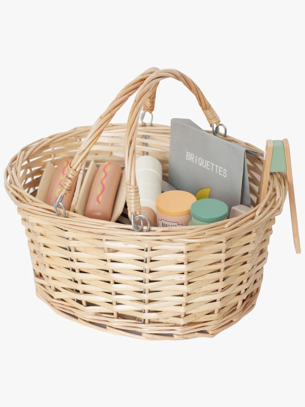 – Indeholder: 1 grill med en grillrist, 4 briketter, 1 ketchupflaske, 1 sennepsflaske, 1 glas med agurk, 1 bøtte med ristede løg, 1 kurv, 2 hotdogs, 2 BBQ-redskaer.