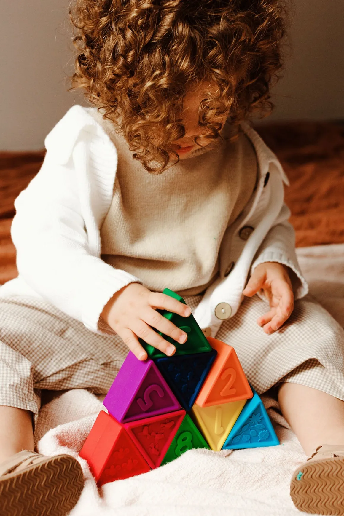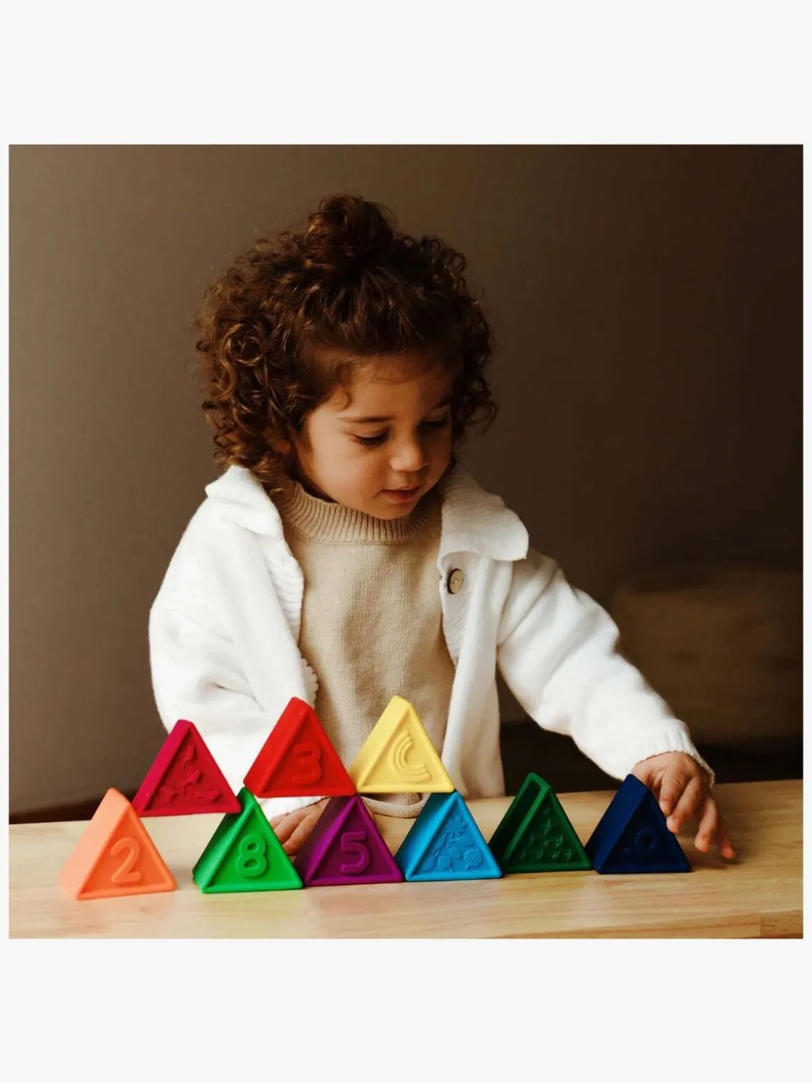 – Perfekt form og vægt for små hænder at udforske, sætte på rad og række, balancere og stable.