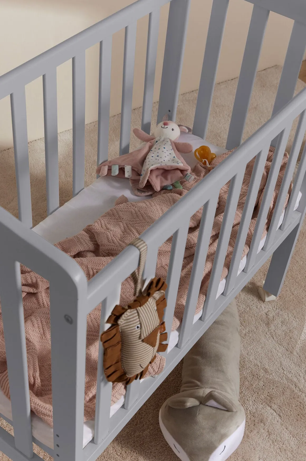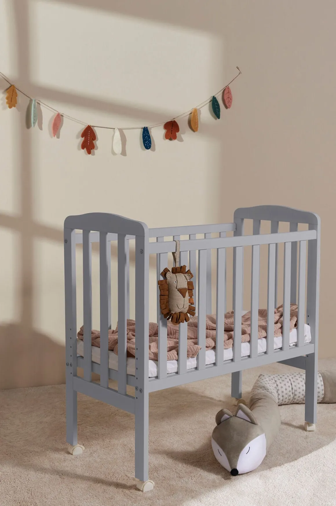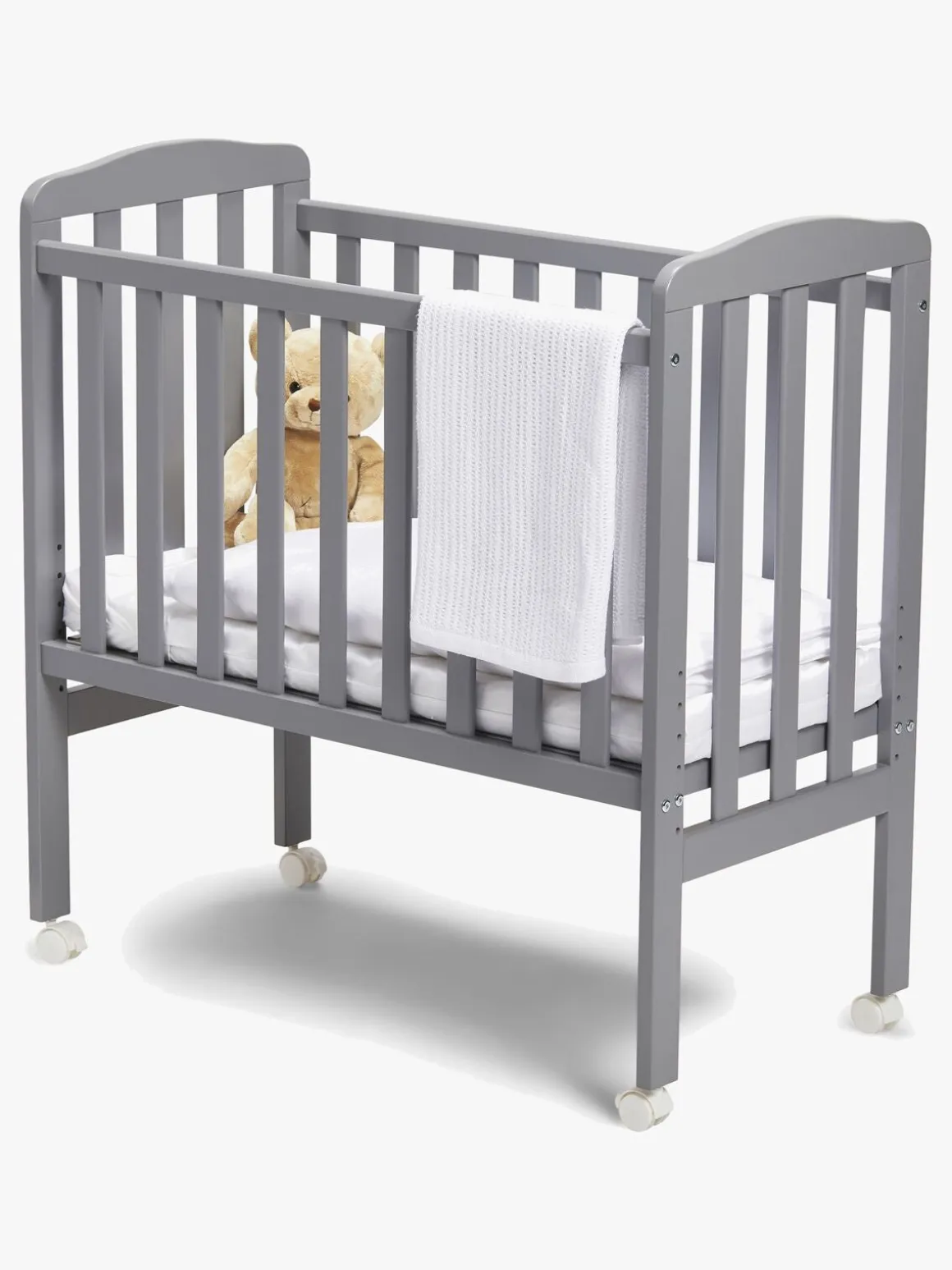 | Øvrige mål | Sengens mål: 40 x 84cm Højste indstilling: 49,8 cm Laveste indstilling: 33,8 cm Sengebundens forskellige højder (inkl. hjul, exkl. madrasse): 1. 33,8 cm 2. 37 cm 3. 40,2 cm 4. 43,4 cm 5. 46,6 cm 6. 49,8 cm |