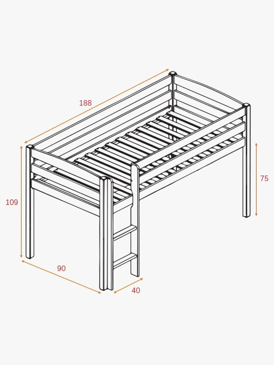 Højde gulv til madras: 75 cm