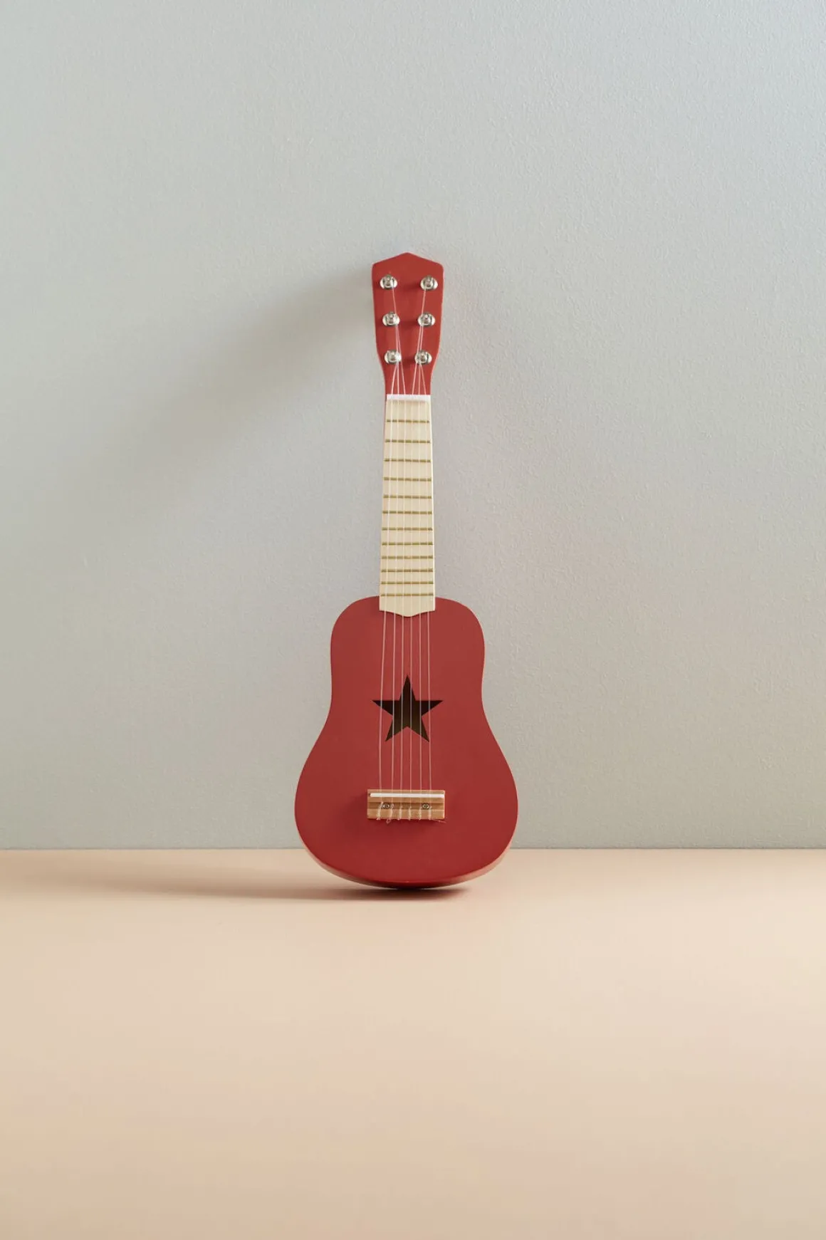 | Materiale | Guitar: træ, krydsfiner Strenge: Polyamid Detaljer: Plastik (ABS) Gribebånd: Kobber |