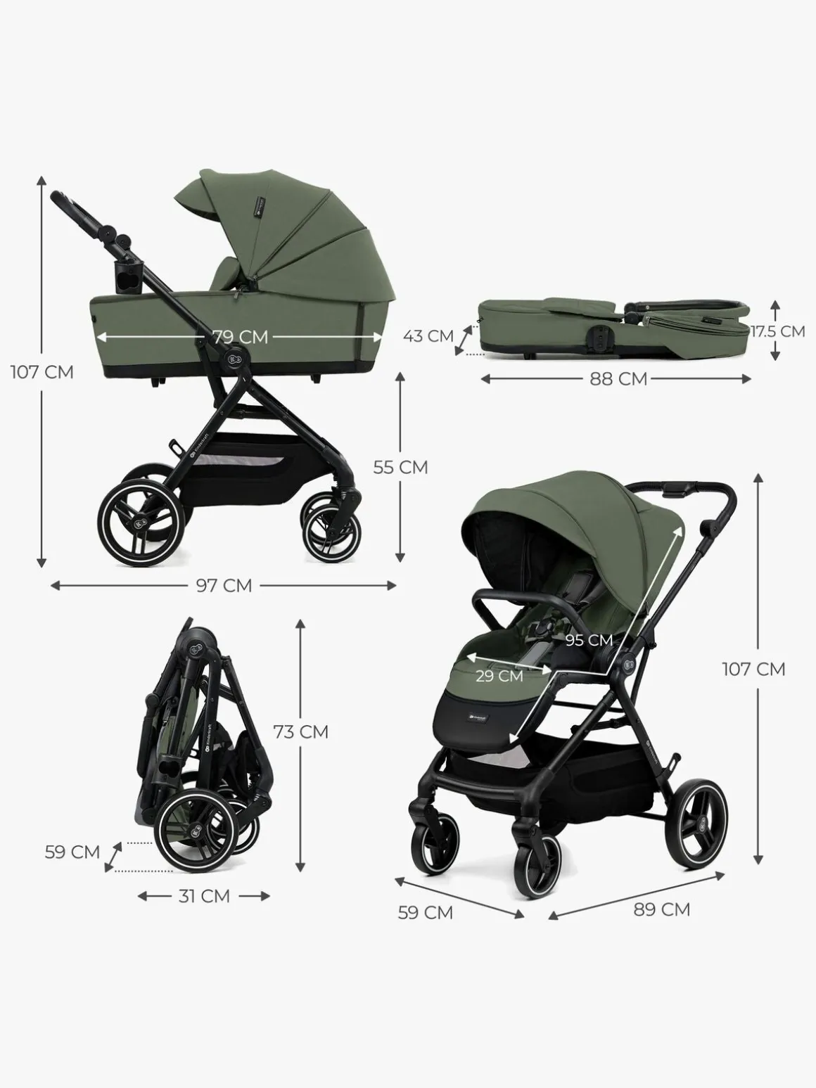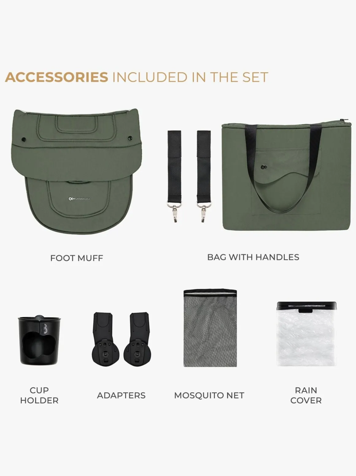 – Inkluderer: regnslag, myggenet, kørepose, kopholder, pusletaske, autostolsadapter.