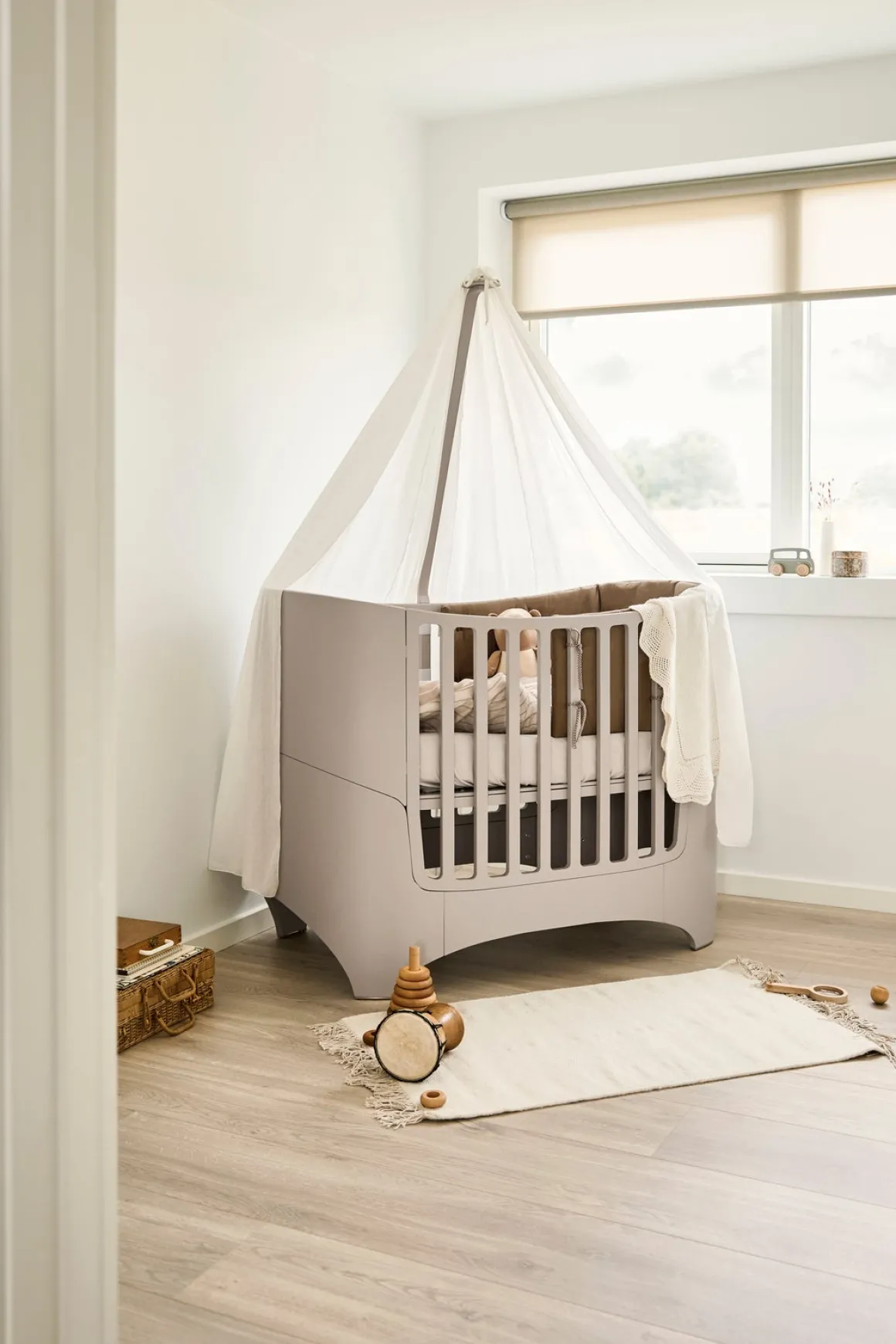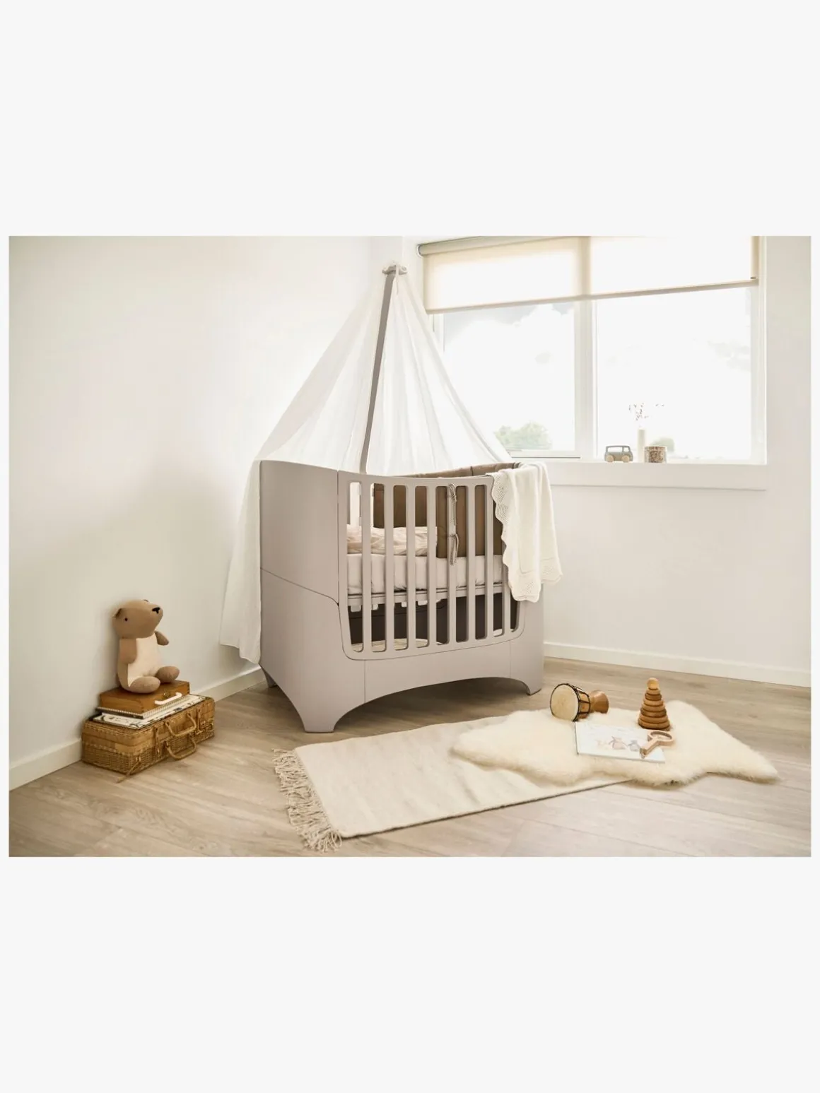 – Du kan hurtigt og nemt forvandle tremmesengen til en juniorseng ved at tilføje juniorsættet. Sælges separat.