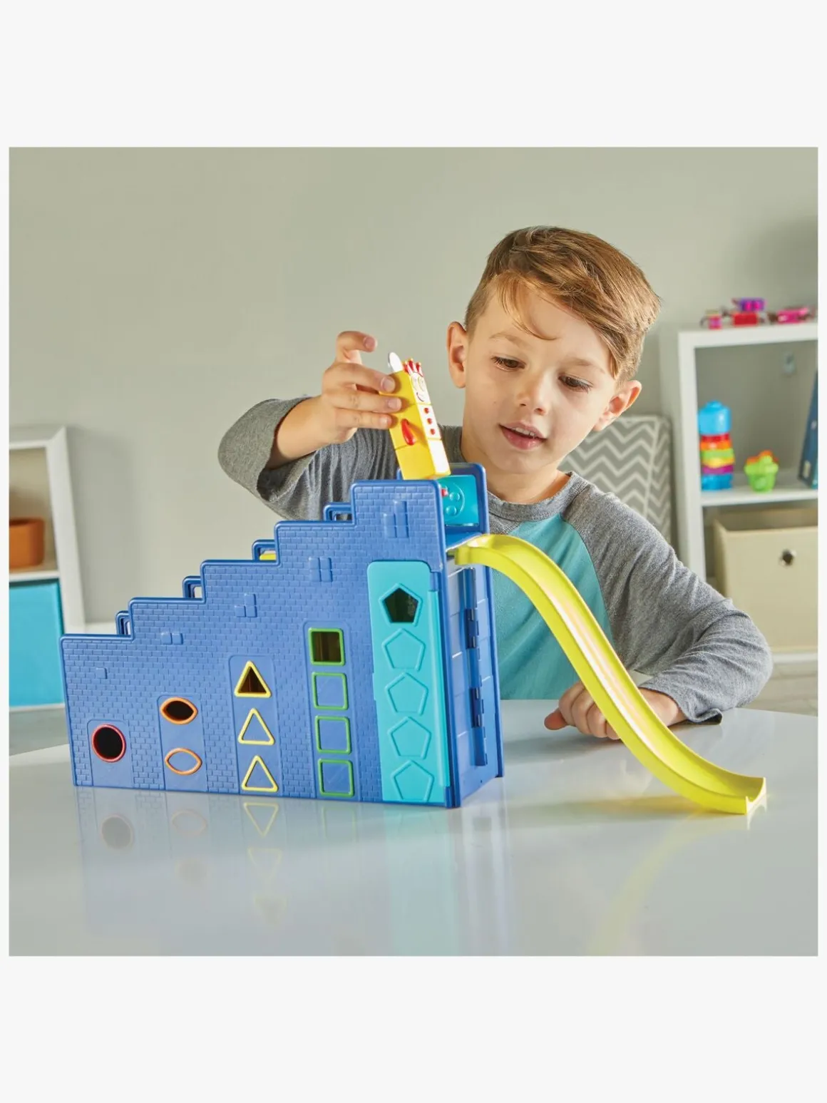 – Indeholder: 1 hovedkvarter, 1 aftagelig rutsjebane, 5 tilbehør, 1 Numberblocks Three figur, 1 klistermærkeark.