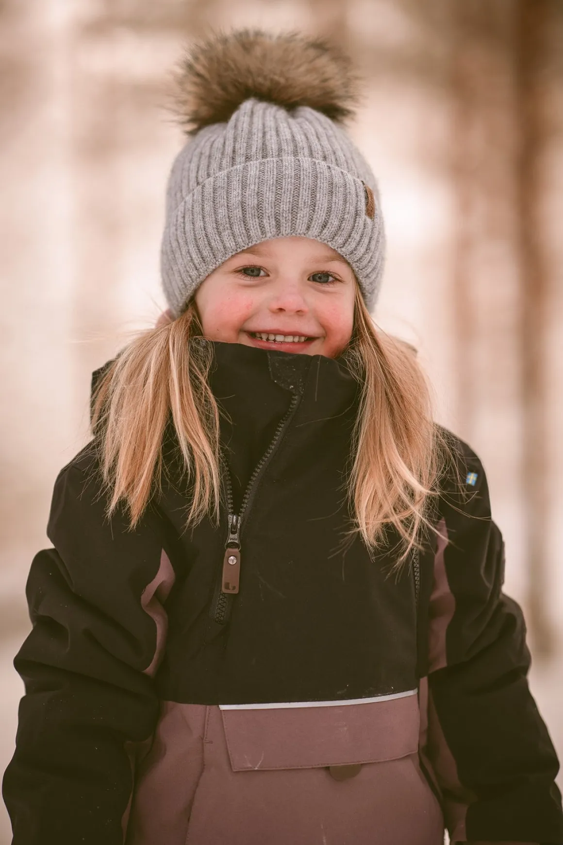 – Pompon i kunstpels.