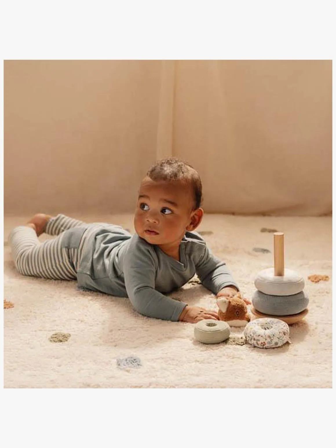 – Indeholder: 1 stablelegetøj, 5 ringe, 1 topklods.