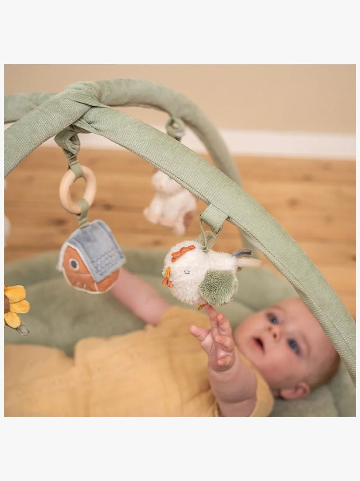 – Advarsler: For at forhindre mulige skader pga. sammenfiltring skal du fjerne dette legetøj, når barnet begynder at forsøge at komme op på hænder og knæ.