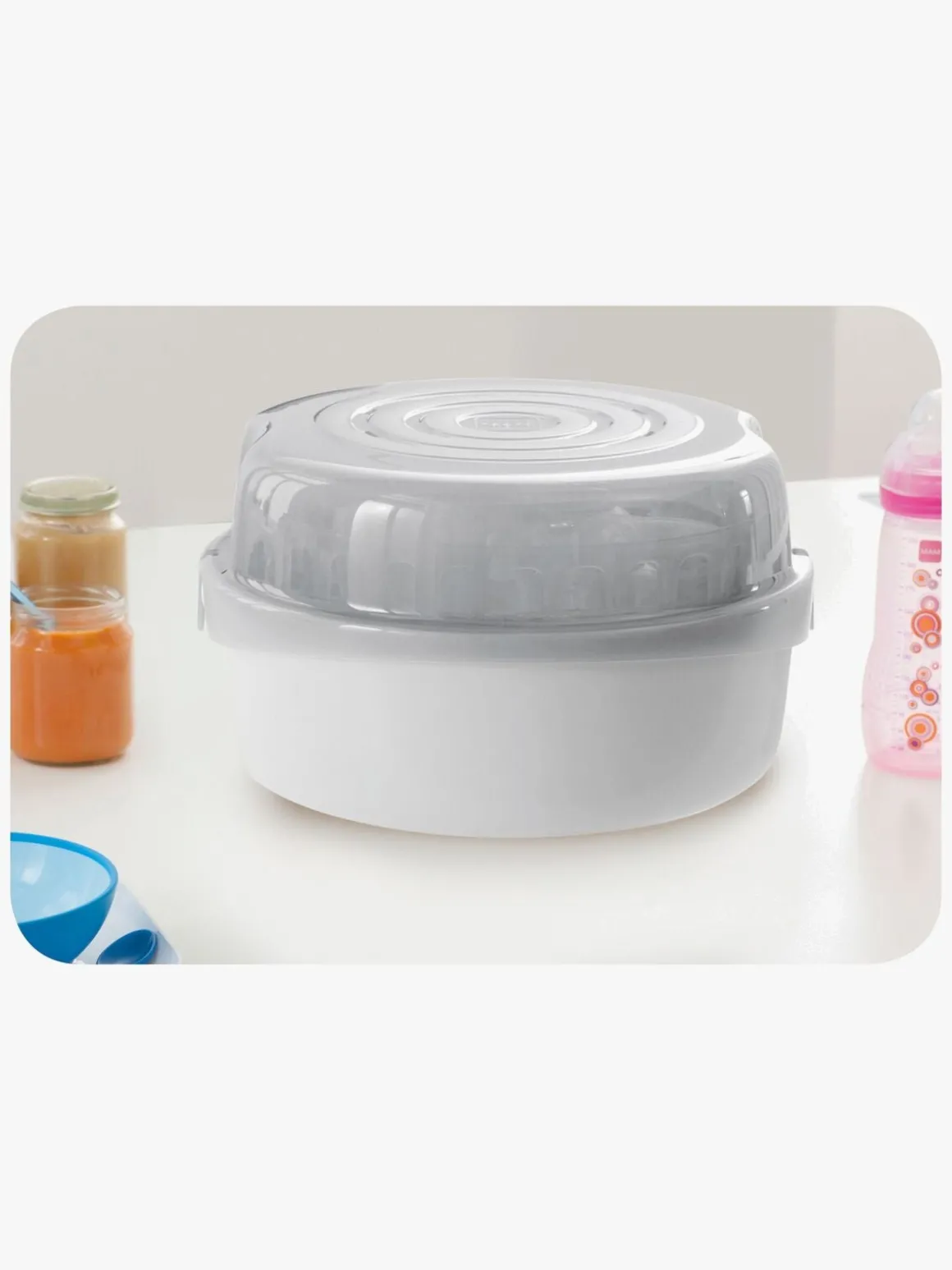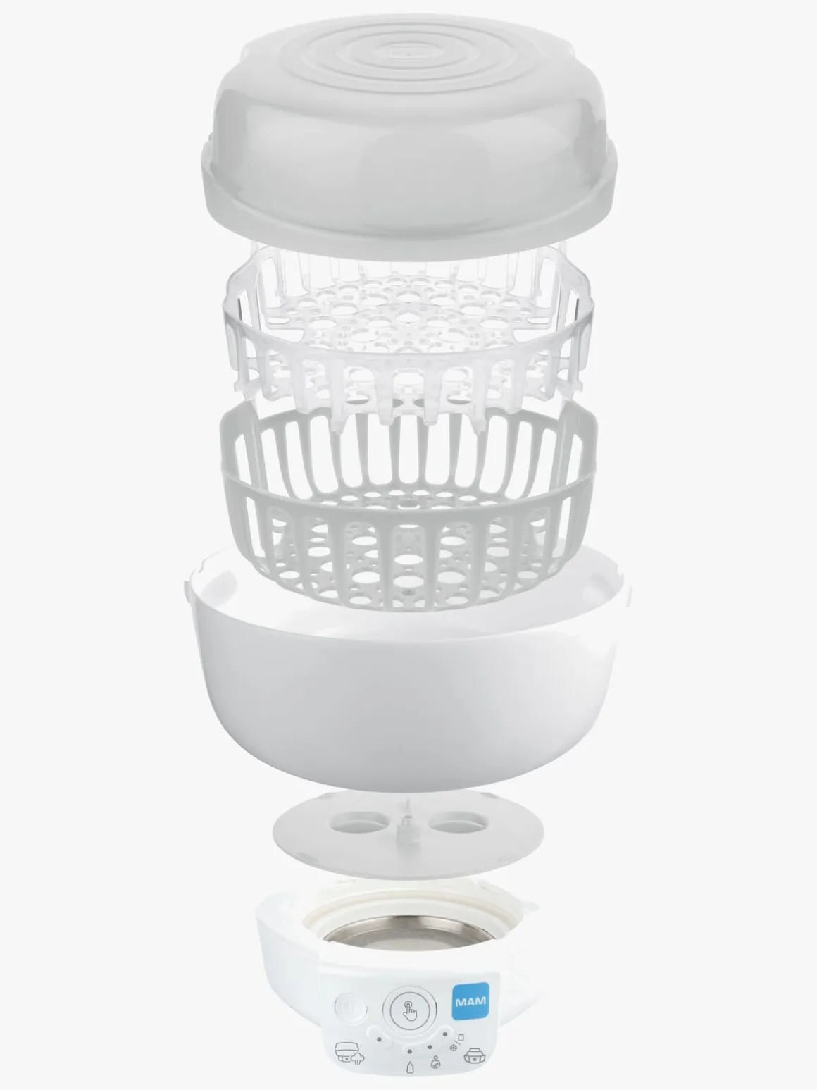 – Inkluderer: varmefunktion til mikroovn, hurtig flaskevarmer, langsom flaskevarmer, funktion til optøning af mad, holder på varmen, elektrisk sterilisator.