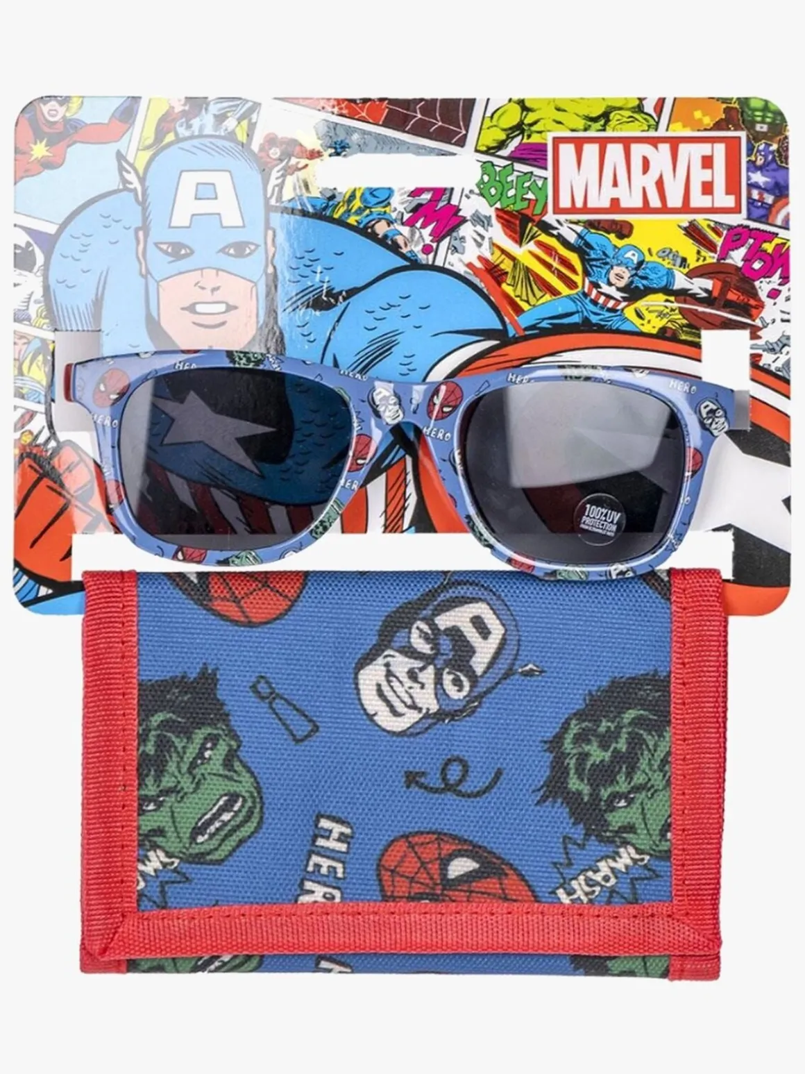 Solbriller fra Marvel Avengers med en matchende tegnebog. Perfekte til et sjovt look.