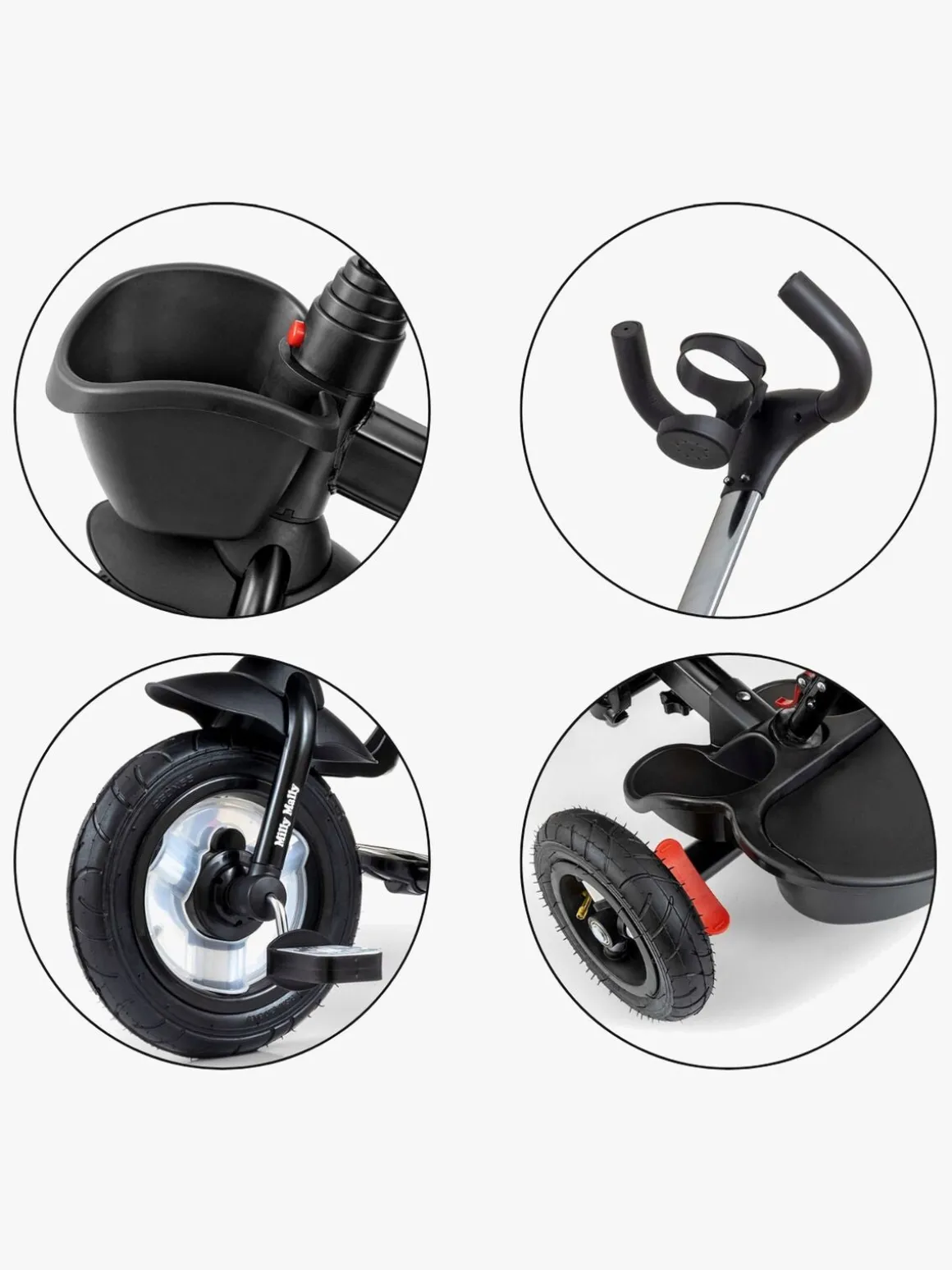 – Forhjulet er udstyret med en beskyttelsesskærm, der forhindrer barnets fødder i at komme i klemme.