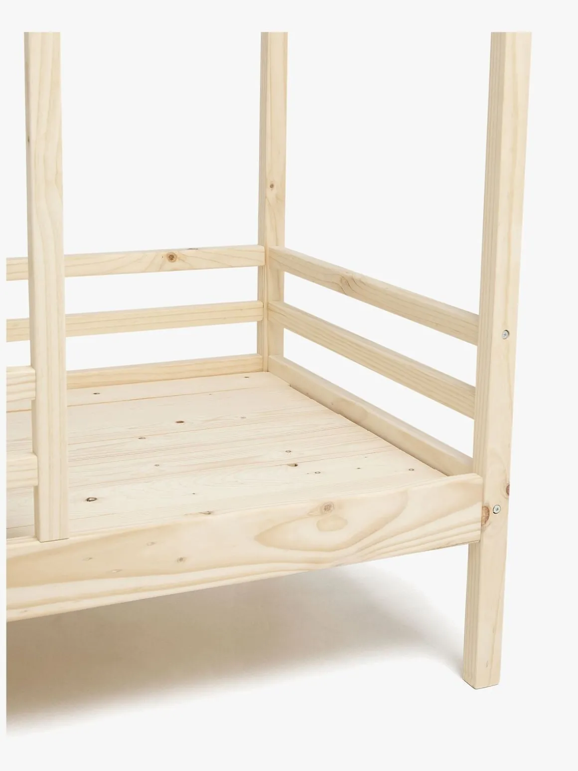 Juniorsengen har høje sider bortset fra en lille åbning i fodenden. For smart opbevaring, køb den matchende sengeskuffe, der passer perfekt under sengen.