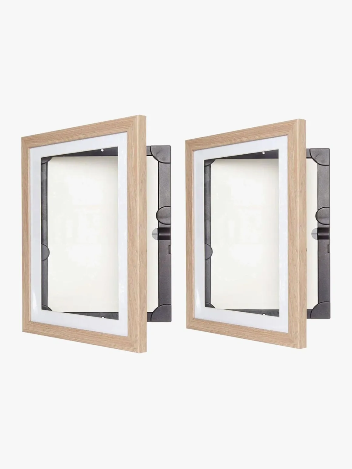 Nu kan din lille kunstner udstille sine bedste værker på børneværelset. Med disse to rammer i A4-format kan du både udstille og opbevare op til 50 færdige malerier eller tegninger. Rammen åbnes på forsiden, hvilket gør det let at tage værkerne ud og erstatte dem med andre.