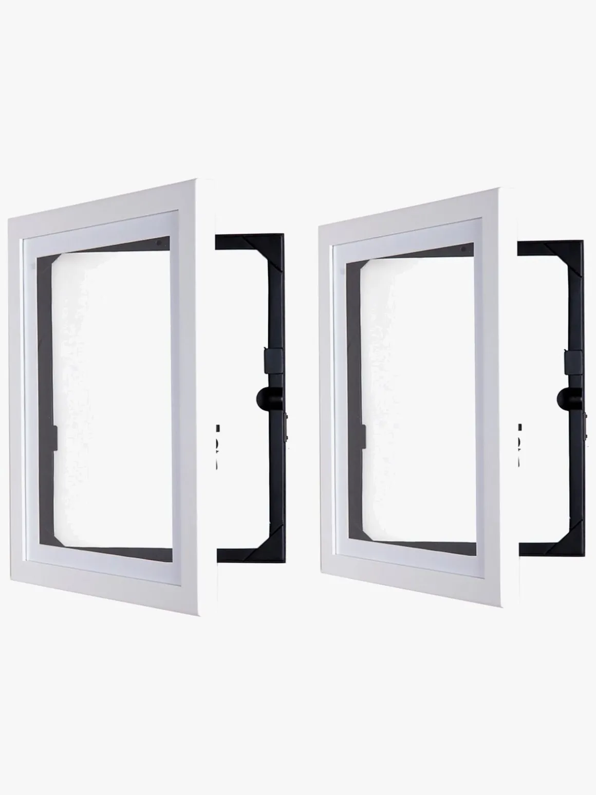 Nu kan din lille kunstner udstille sine bedste værker på børneværelset. Med disse to rammer i A4-format kan du både udstille og opbevare op til 50 færdige malerier eller tegninger. Rammen åbnes på forsiden, hvilket gør det let at tage værkerne ud og erstatte dem med andre.