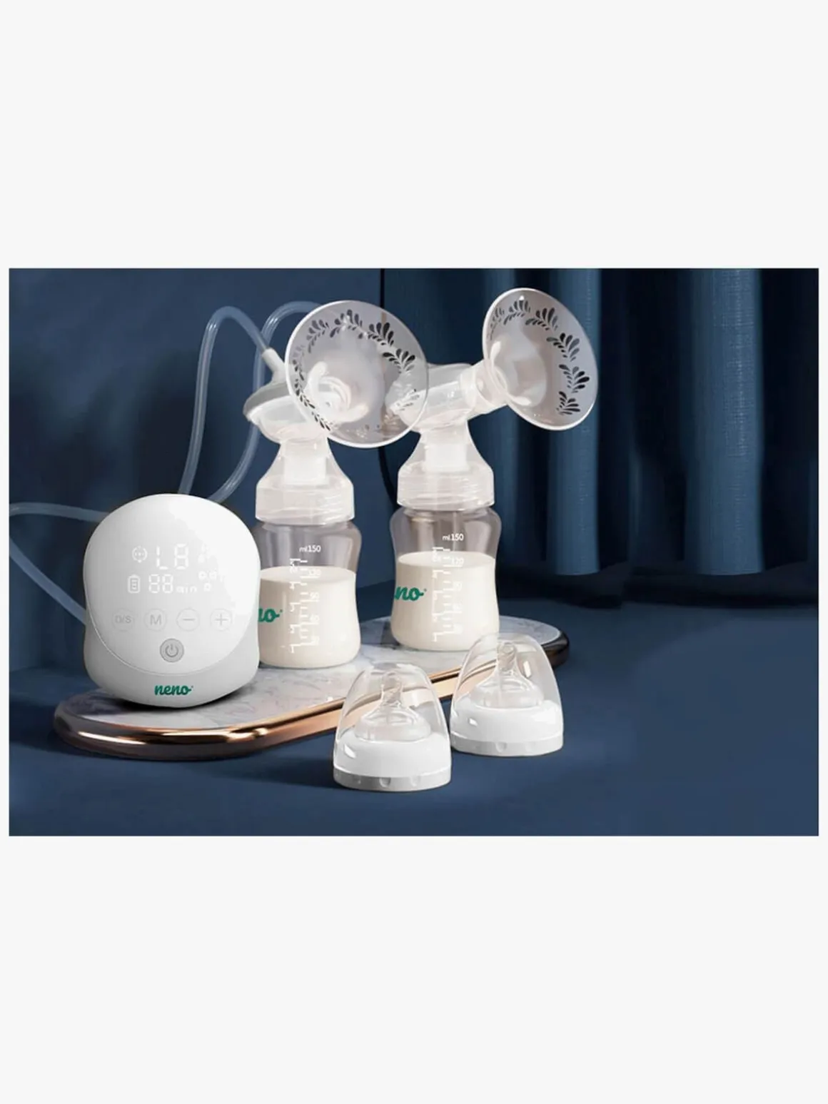 Neno Due har en indbygget stimuleringsindstilling, som du bruger til at stimulere mælkekirtlerne med inden udmalkning, hvilket giver en bedre mælkestrøm. Du kan indstille enheden efter egne behov og vælge, om du vil pumpe fra det ene eller begge bryster samtidigt. Efter 30 minutters inaktivitet slukker pumpen automatisk.